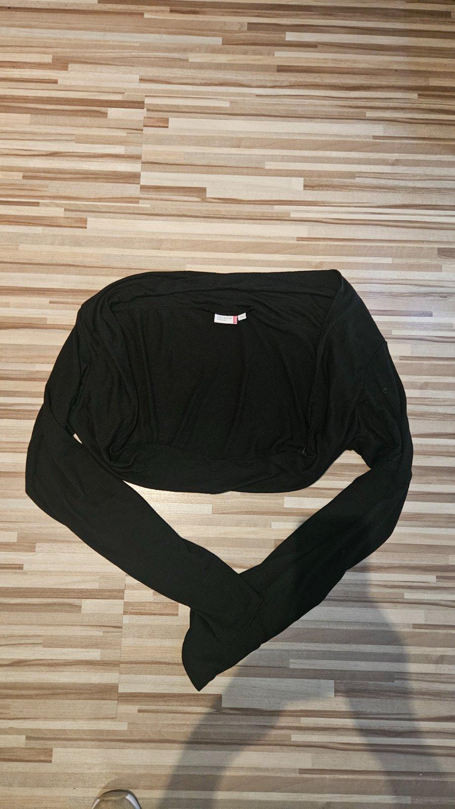 Darujem k nákupu. Vhodné na šaty, topy, tielka. Ľahunký čierny šifón, s ozdobným gombíkom. V dobrom stave. Uvedená veľkosť 42, ale sedí skôr na 44, pozrite rozmery. Dĺžka 52 cm, šírka 53 cm, ruká...