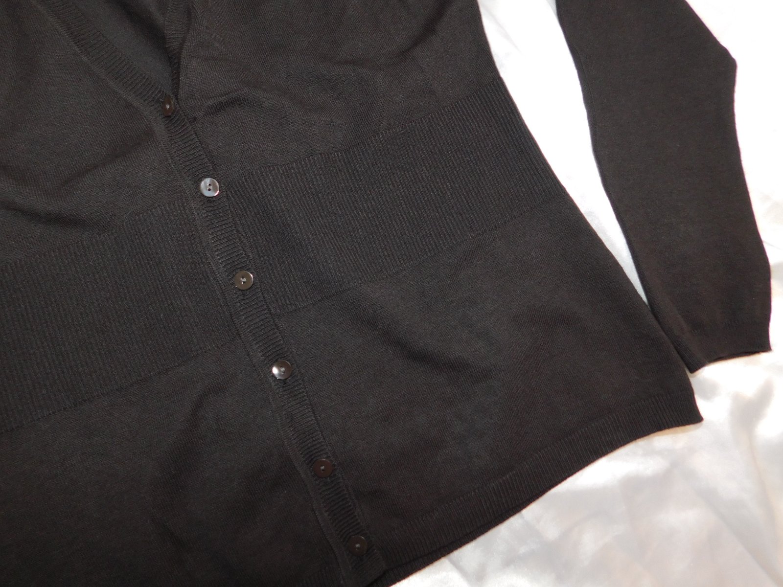 Tenky svetrik vo velmi dobrom stave, farba cokoladova. Vel sedi na 40/42 Sirka prsia 2x 46cm, pas 2x40 cm