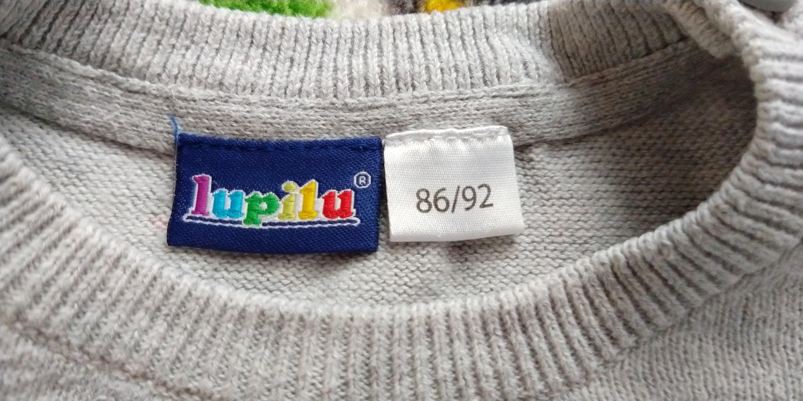 Málo používaný pulóver s mackom. Bežné známky nosenia, bez poškodenia. Pekný stav. Veľkosť: 86/92.