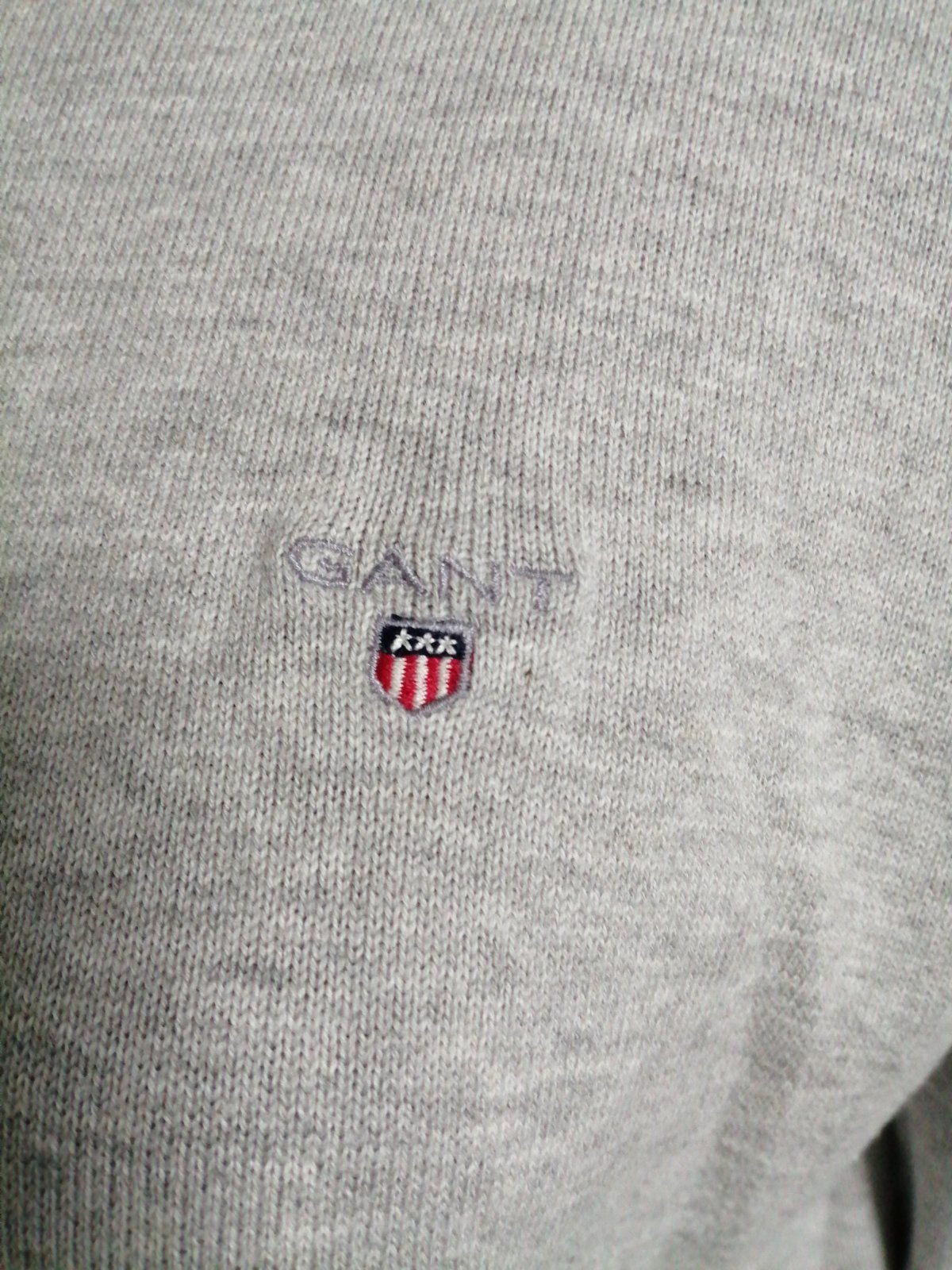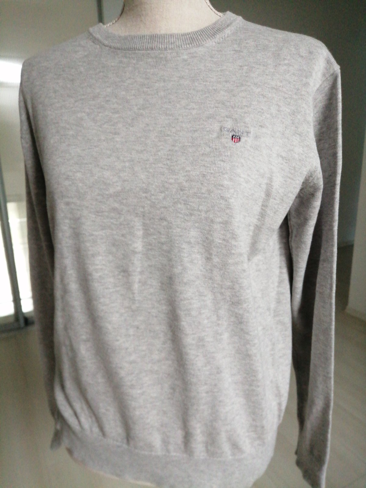 Dievčensky znackovy šedý pulovrik Gant, obvod hrudnika je 104 cm, rukavy od krku 72 cm a dĺžka je 60 cm