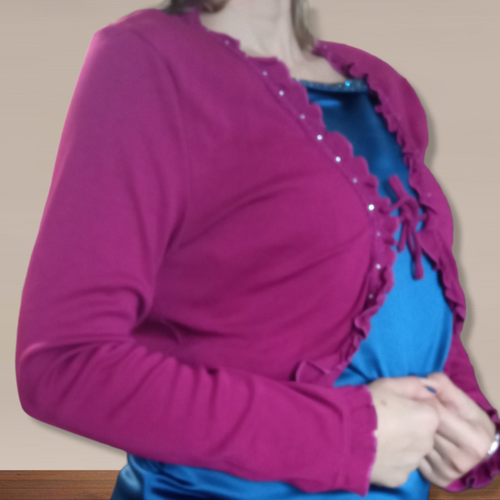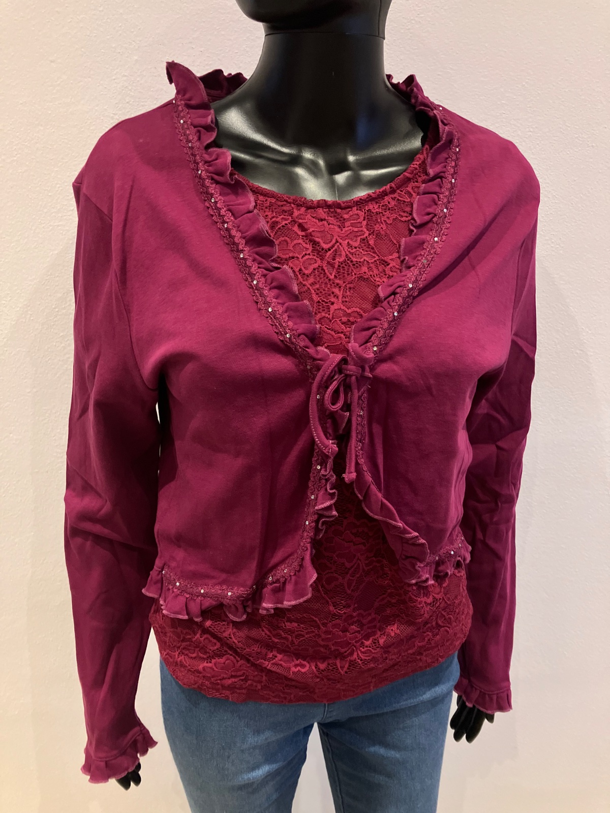 Dámske bolero s volánom a kamienkami, so zaväzovaním, elastické, materiál 100%bavlna.