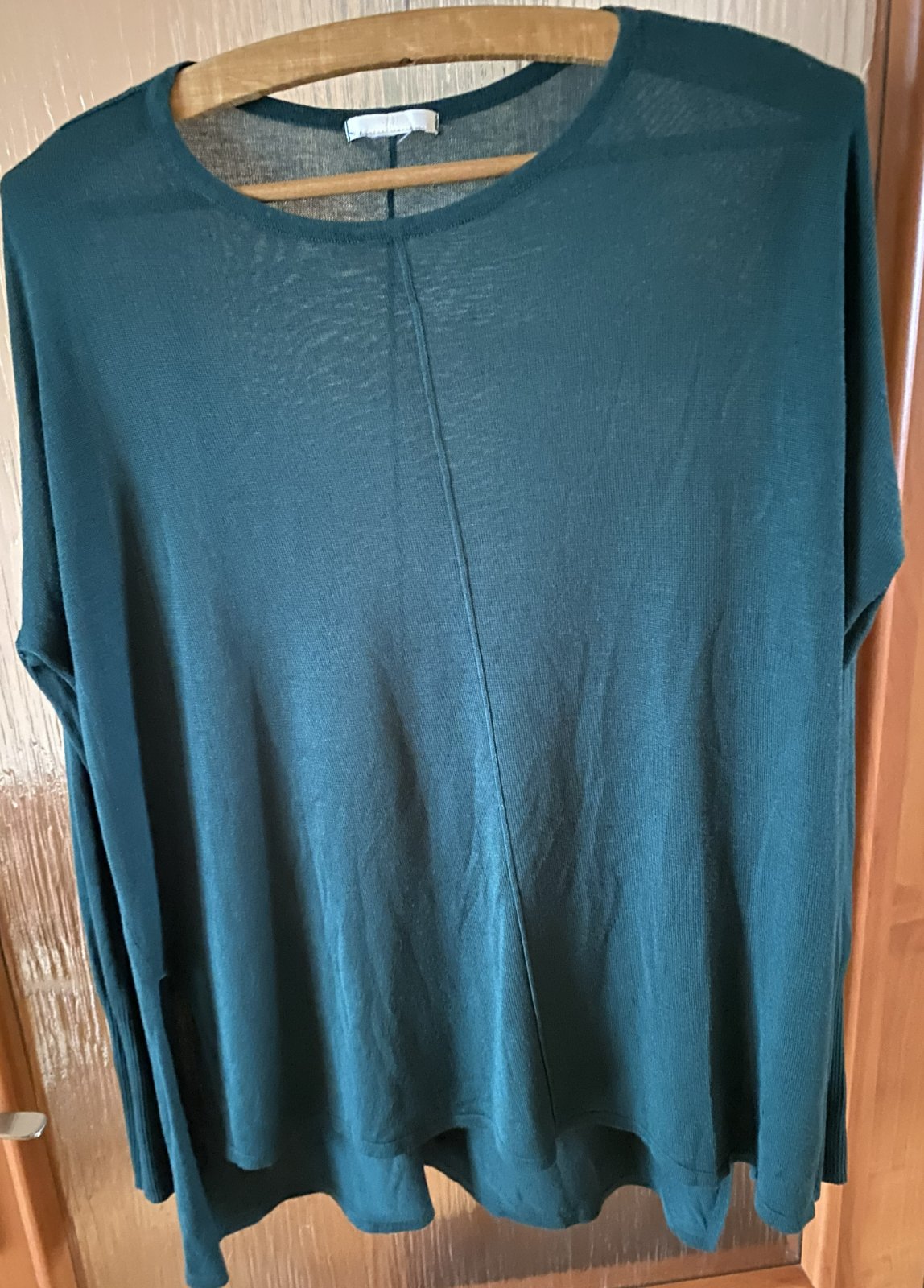 Dvojpack - dámsky tenší sveter - pulóver H&M v. XL/XXL (štítky sú odstrihnuté) - premerajte, pekné nevypraté farby - sýta červená a sýta zelená, materiál: 58% bavlna, 33% modal, 9% ľan - pružný materiál príjemný na nosenie, na bokoch rozpárky, rukávy ukončené pružným rebrovým patentom - dá sa vyhrnúť, málo nosené na striedačku s inými. Miery merané kľude, sú pružné, všade povolia: dĺžka: 70cm, šírka v podpazuší: 68cmx2, rukáv od krku: 73cm.