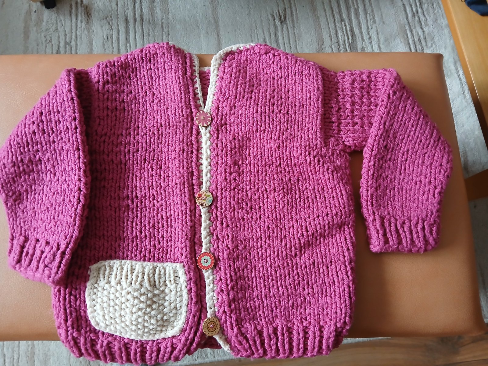 Ručne pletený sveter, vnučka z neho rýchlo vyrástla.