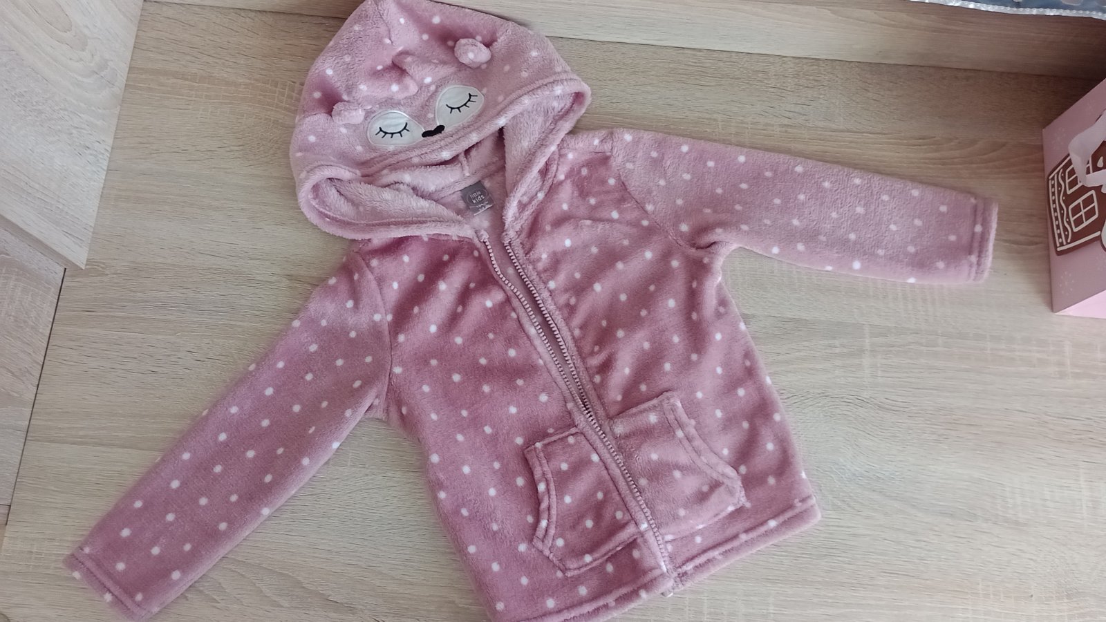 Ponúkam na predaj dievčenskú mikinu (bledosivú s farebnými bodkami), spredu zapínanie na zips, vo veľmi dobrom stave + ružové legíny s kvietkami na donosenie na doma alebo na dvor. Všetko značka PE...