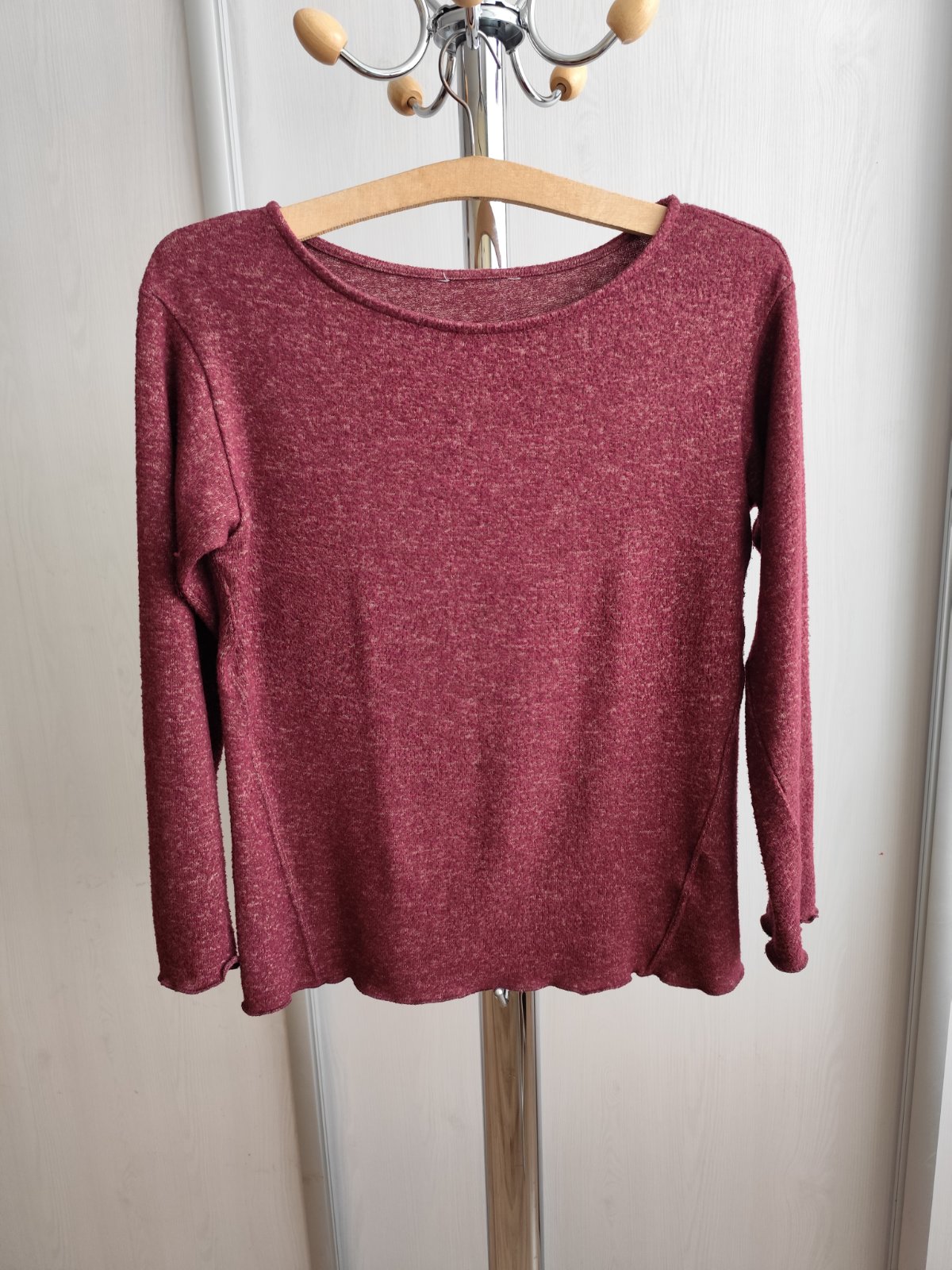 Tenký, mäkučký, veľmi elastický pulóver. Visačky odstrihnuté, v kľude cez prsia 2 x 50 cm (povolí aj o viac ako 2 x 10 cm), dĺžka 62 cm. Nosený, darujem na vyžiadanie k nákupu nad 5€.