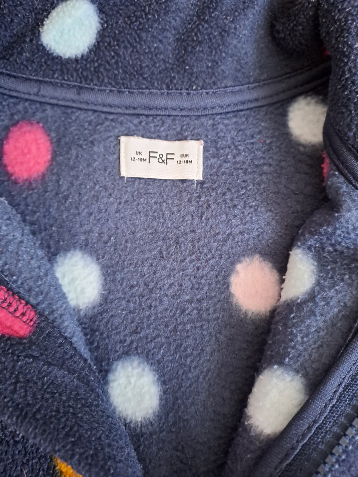 Pekná fleecová mikinka zn. F&F. Veľmi pekný nosený stav, bez poškodení. Mini prací chĺpok. Veľ. 12/18m, ale je väcsia.