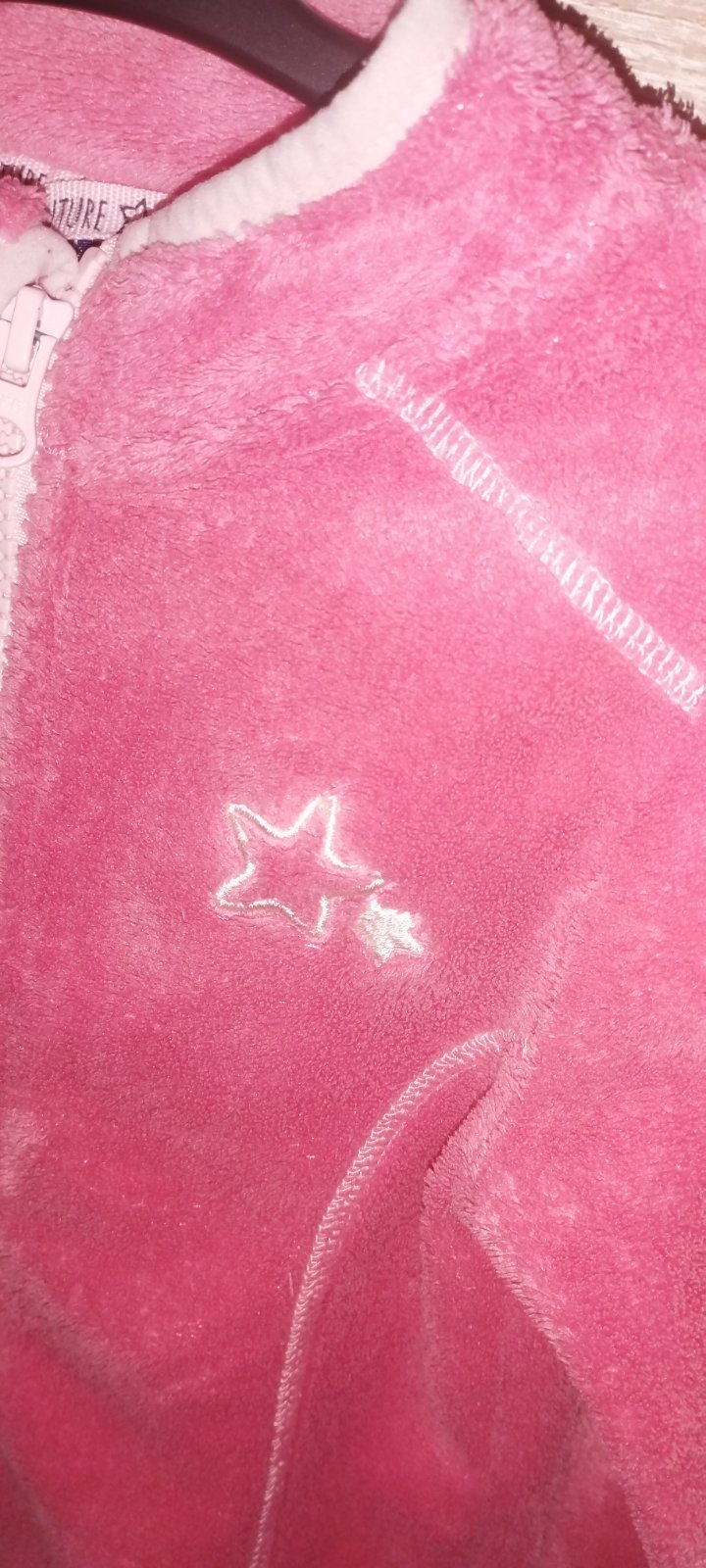 Hebká mikina, zapínanie na zips, vrecká, kapucňa s uškami.