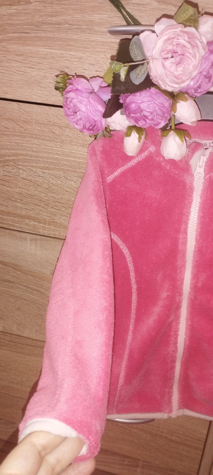 Predám mikinku vo veľkosti 104 peknej lososovej farby po jednom dieťati v zachovalom stave. Dĺžka cez chrbát 36cm, šírka pod pazuchami 34cm, dĺžka rukávu od ramena 33cm.