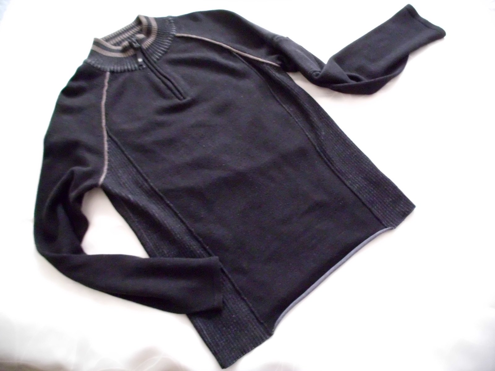 Predám pánsky sveter Armani Jeans vel. L , šírka 58 cm , dĺžka 73 cm, rukáv 81 cm meraný od krku + malé vrecko na zips, materiál veľmi príjemný stredne hrubý pružný s podielom vlny prispôsobivý postave , farba čierna , 2x oblečený, 100% top stav