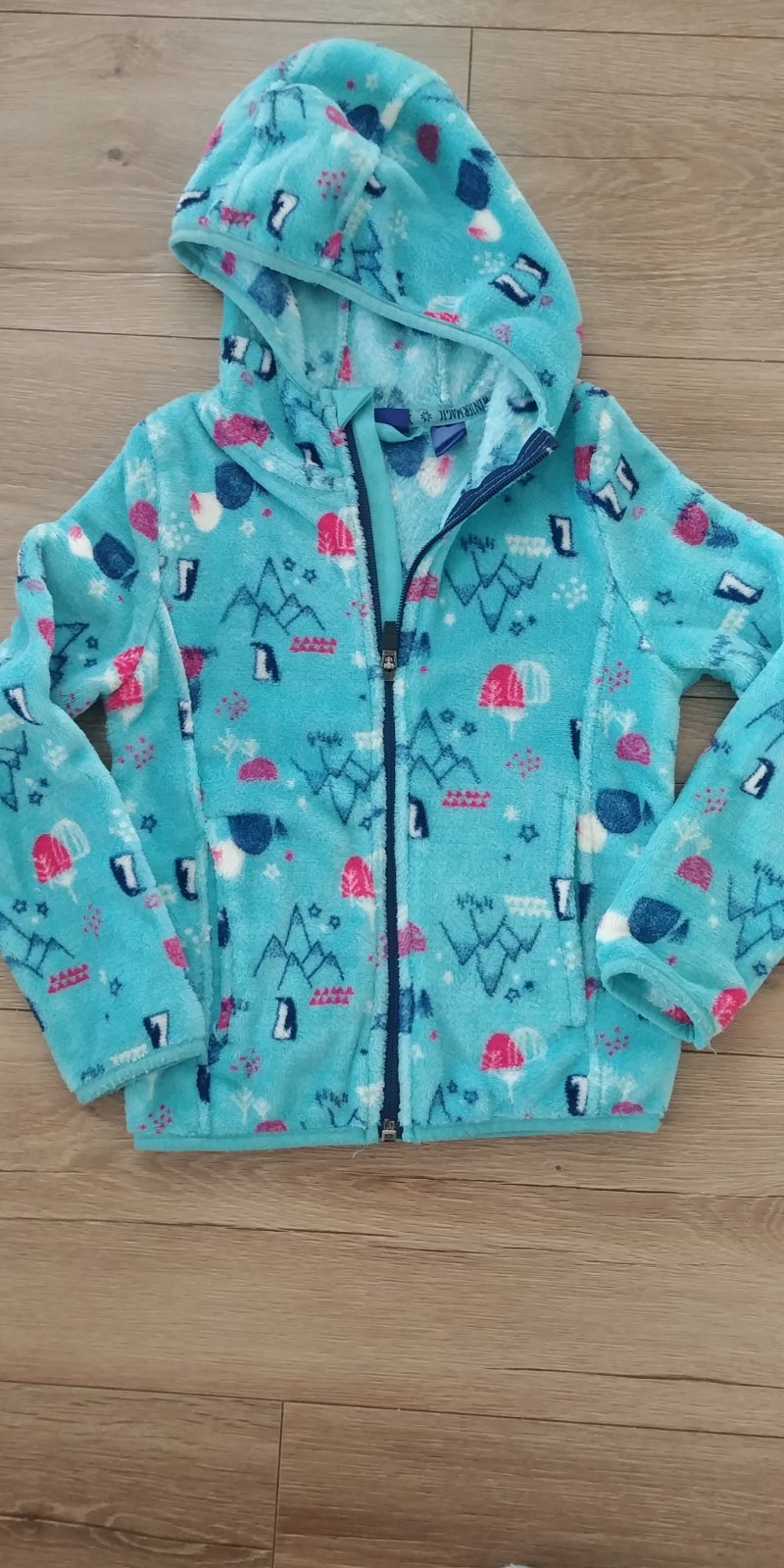 Mikina je nová, na chrbte je obrázok, veľkosť je uvedená 110 /116.