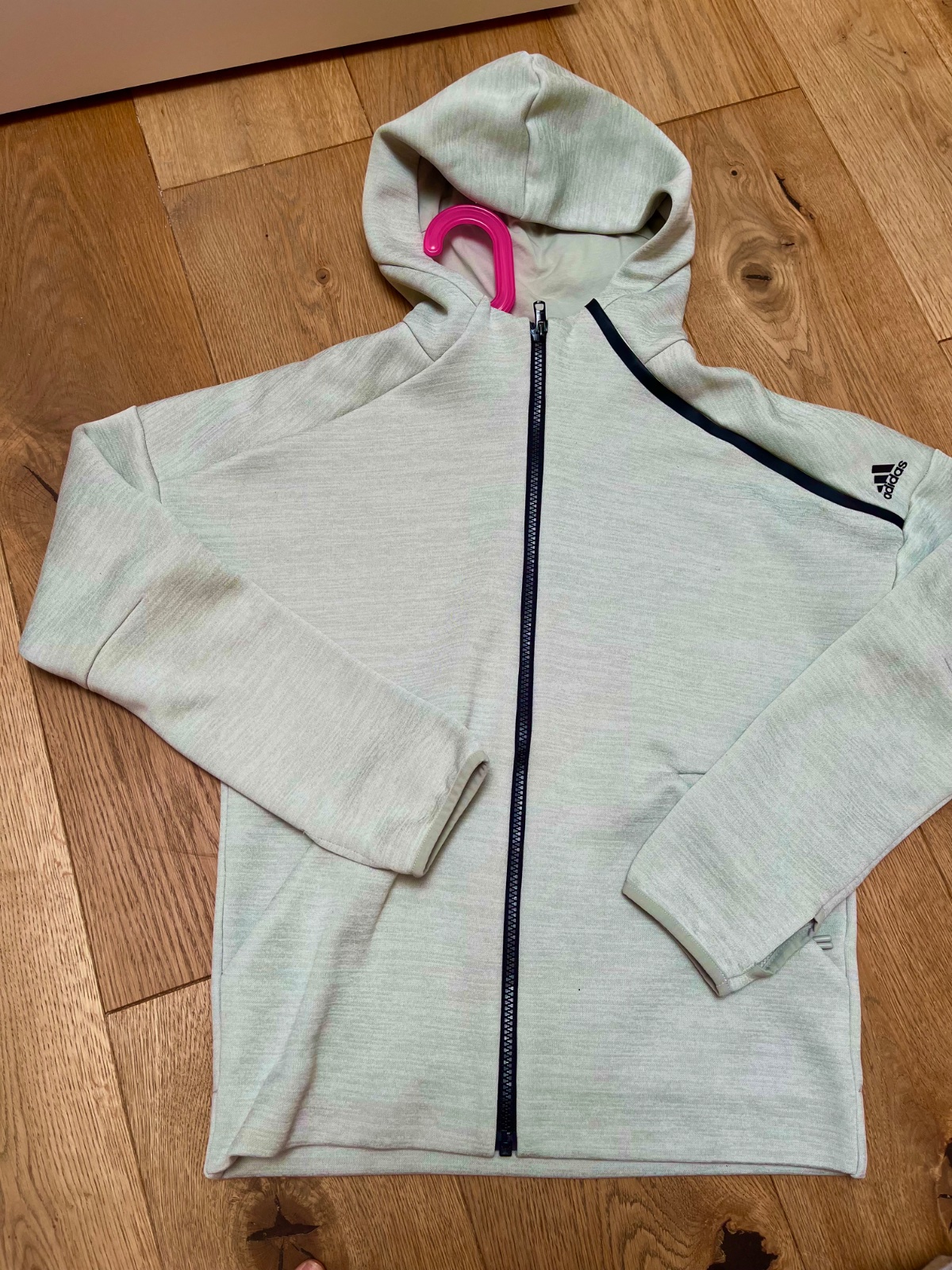 Nádherná mikina, jemne zelena farba, jablckovo zelena, top stav. Širšia, dlhsie výnosu. Dĺžka 57cm, sirka 43cm. Veľmi odporucam.