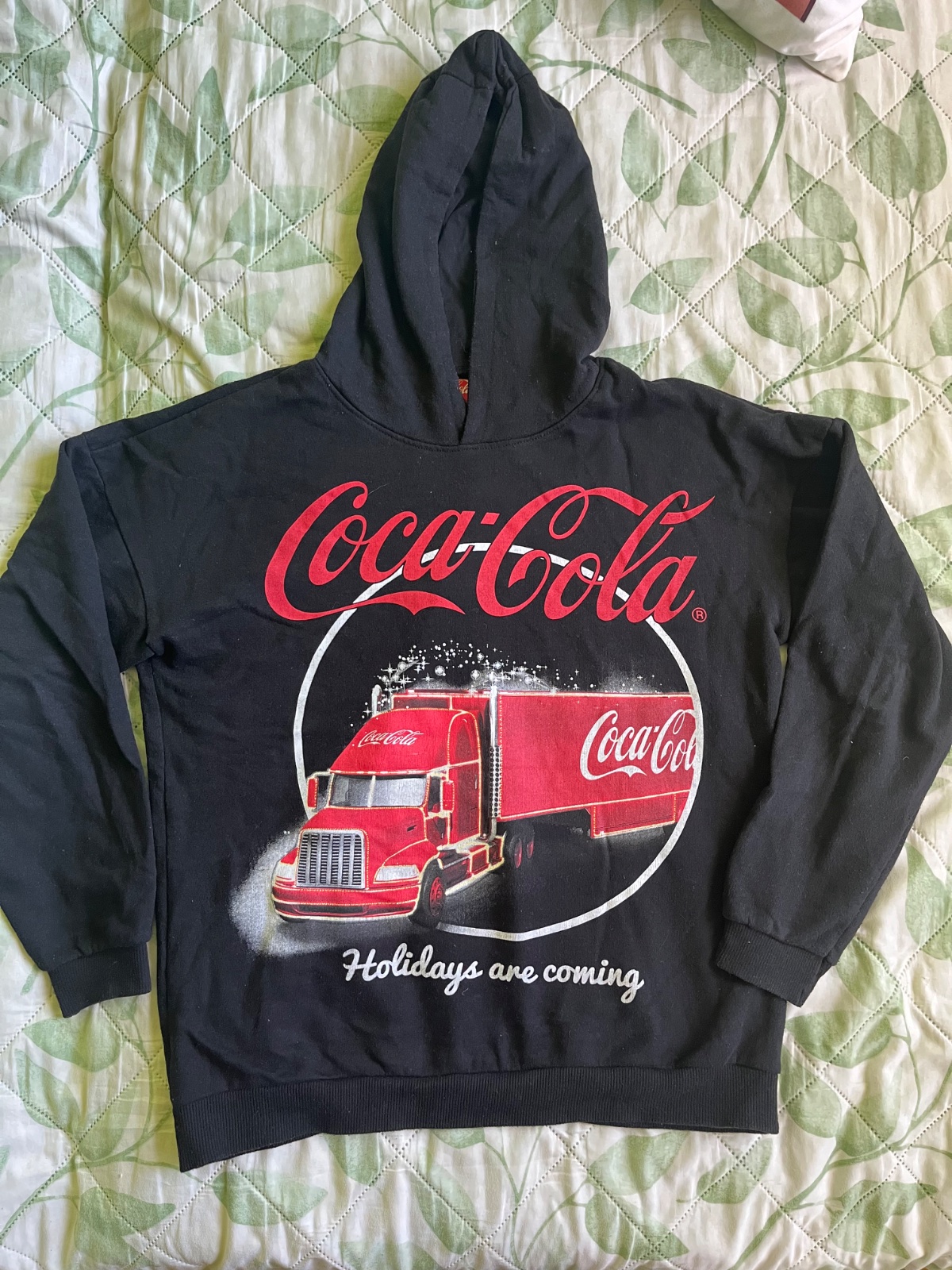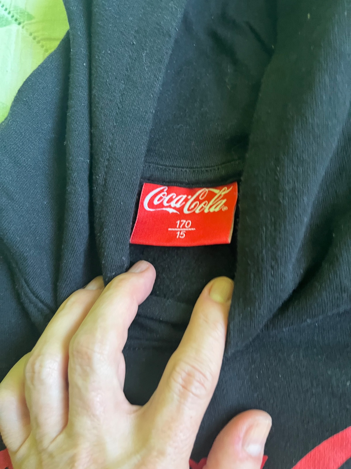 Coca Cola: dlzka 62 cm, sirka 53 cm, rukav po plece 45 cm, 65 cm po kapucnu