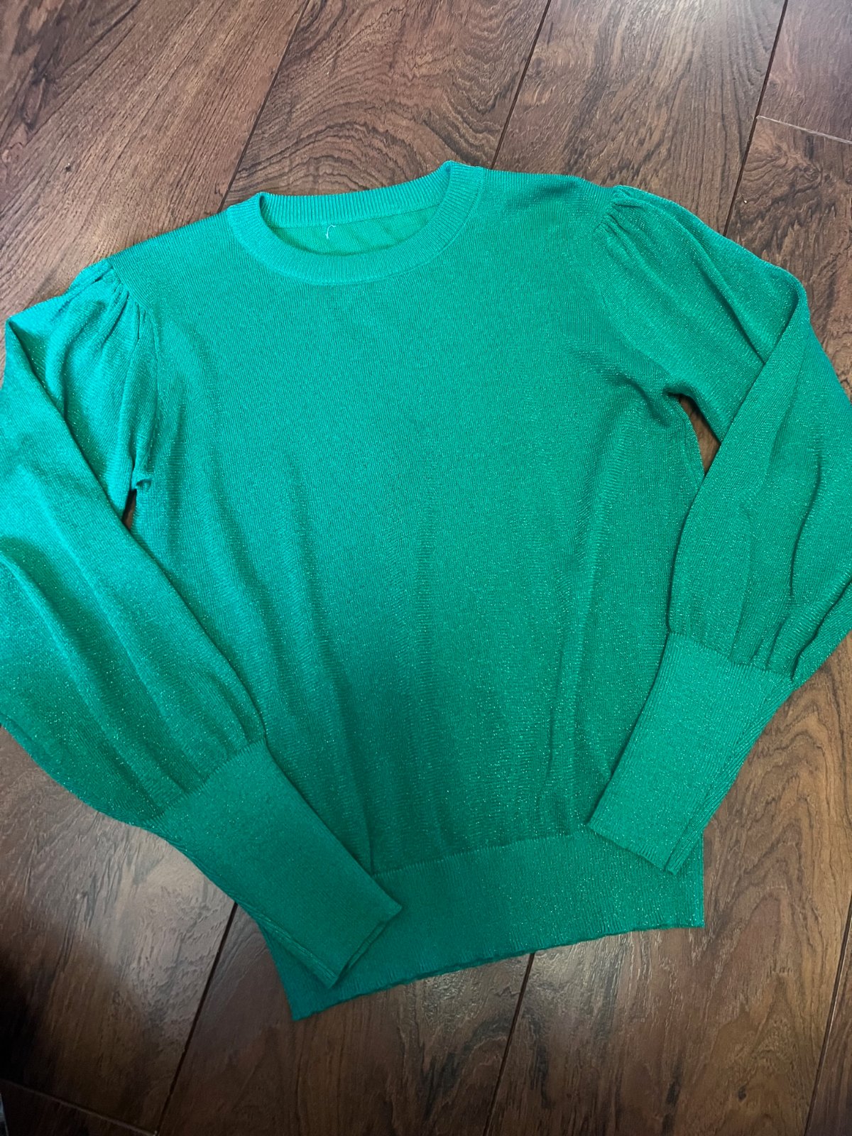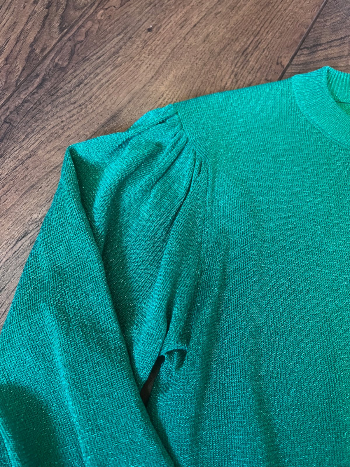 Naživo krásna zelená farba, rukávy pekne nariasené