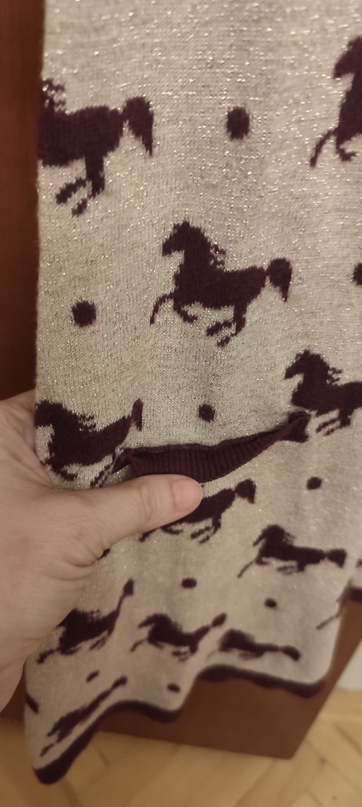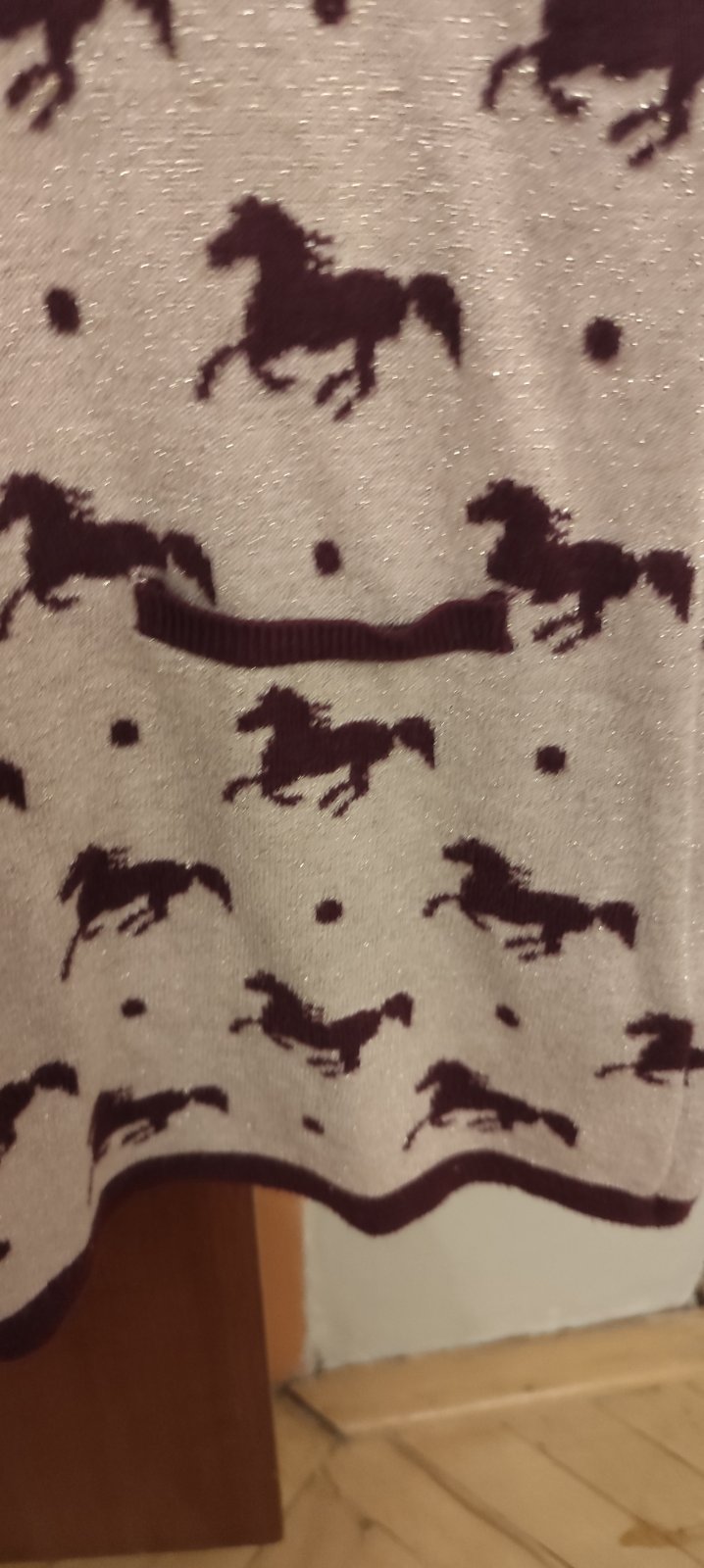 Predám peknú lesklú tuniku s koníkmi. Farba je taka zlatobéžová.