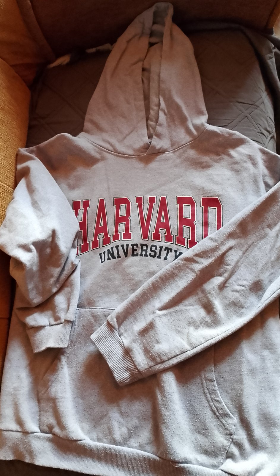 Mikina s kapucňou nosená mojim synom,už je mu malá.