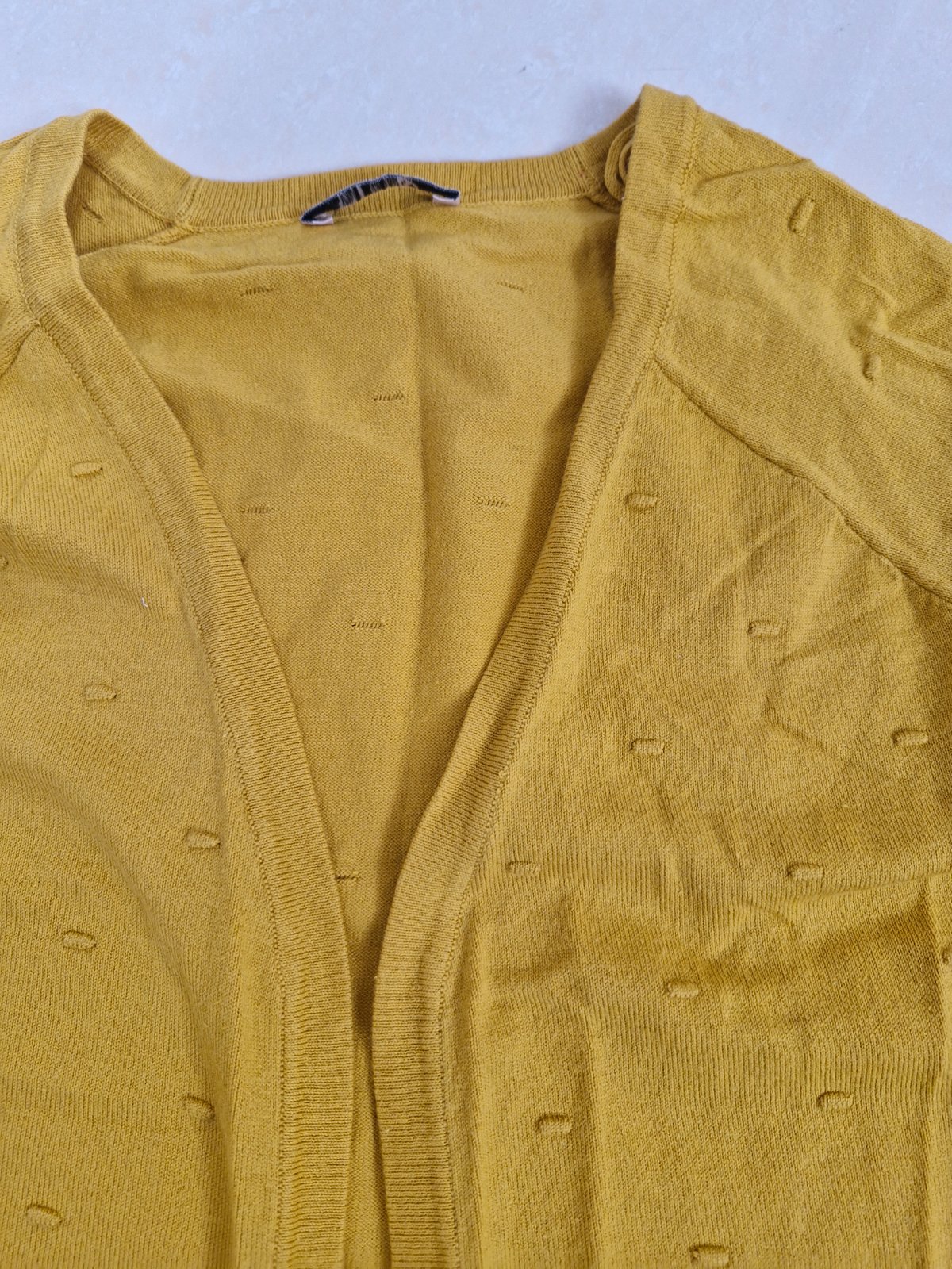 Kardigan je bez zapínania. Velkos S. Raz oblečeny.