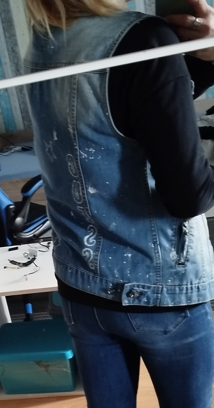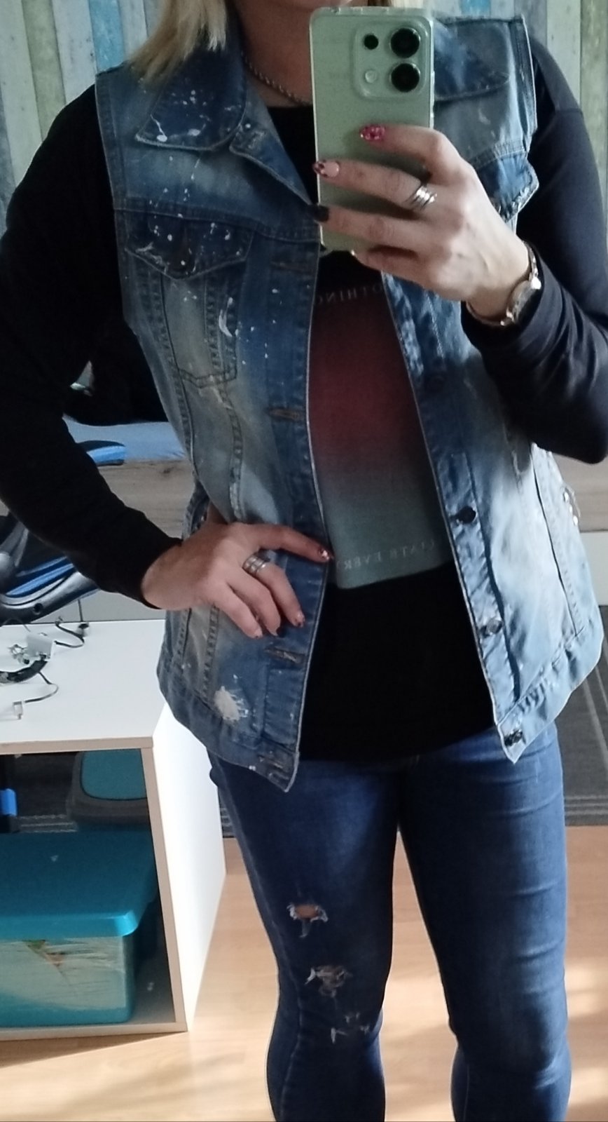 Predám malo nosenu rifľovú vesticku vhodnú na tricko, saty, ale je možné ju nosit samostatne. Veľkosť L. V prípade záujmu, poslem rozmery. Cena 7 eur + postovne.