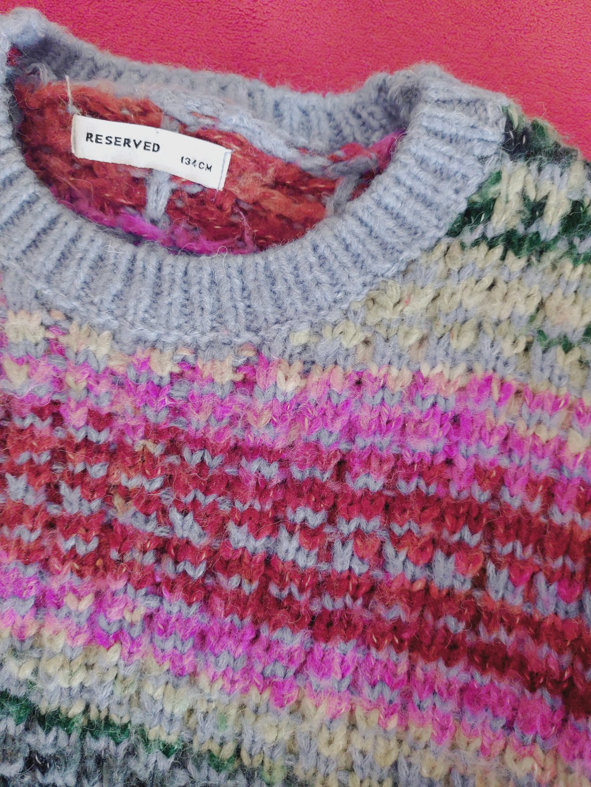 Predám pulóver zn. Reserved, veľkosť 134. Dĺžka 43cm, šírka pod pazuchami 2x45cm, rukáv od krku 56cm. Pekný nosený stav (má trochu žmolky). Cena 6€ plus pošta
