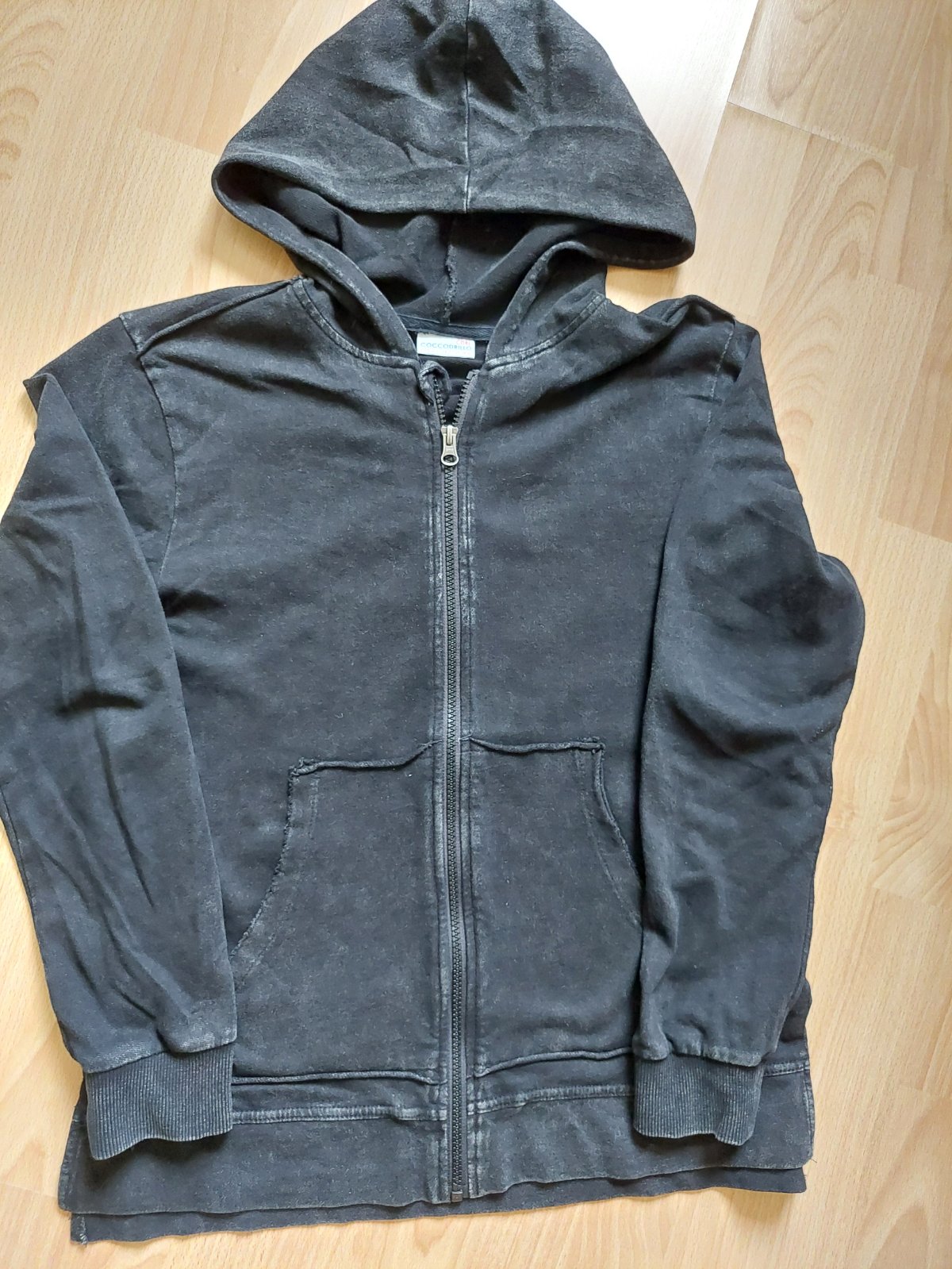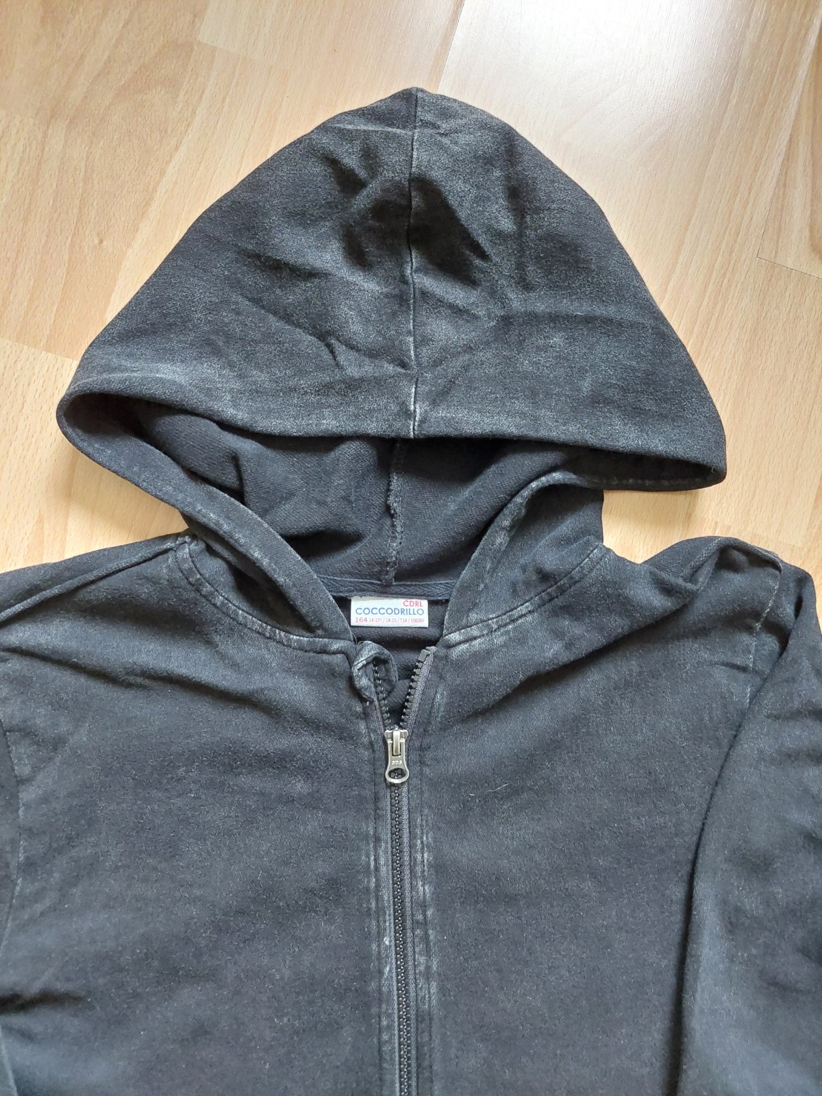 Cierna tenka mikinka, nezateplena, zn. Coccodrillo, velk. pisana 164, ale je mensia, preto som zaradila do velk. 158. Je nosena, bez poskodeni. Farba je cierna, mramorova - s vypranym efektom (tak bola kupovana).
