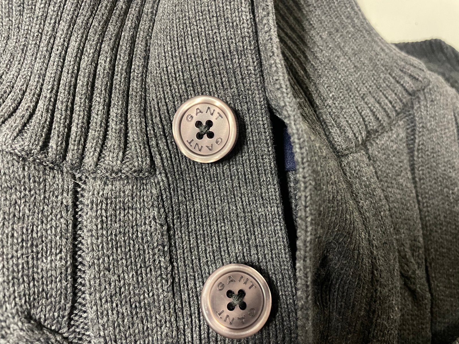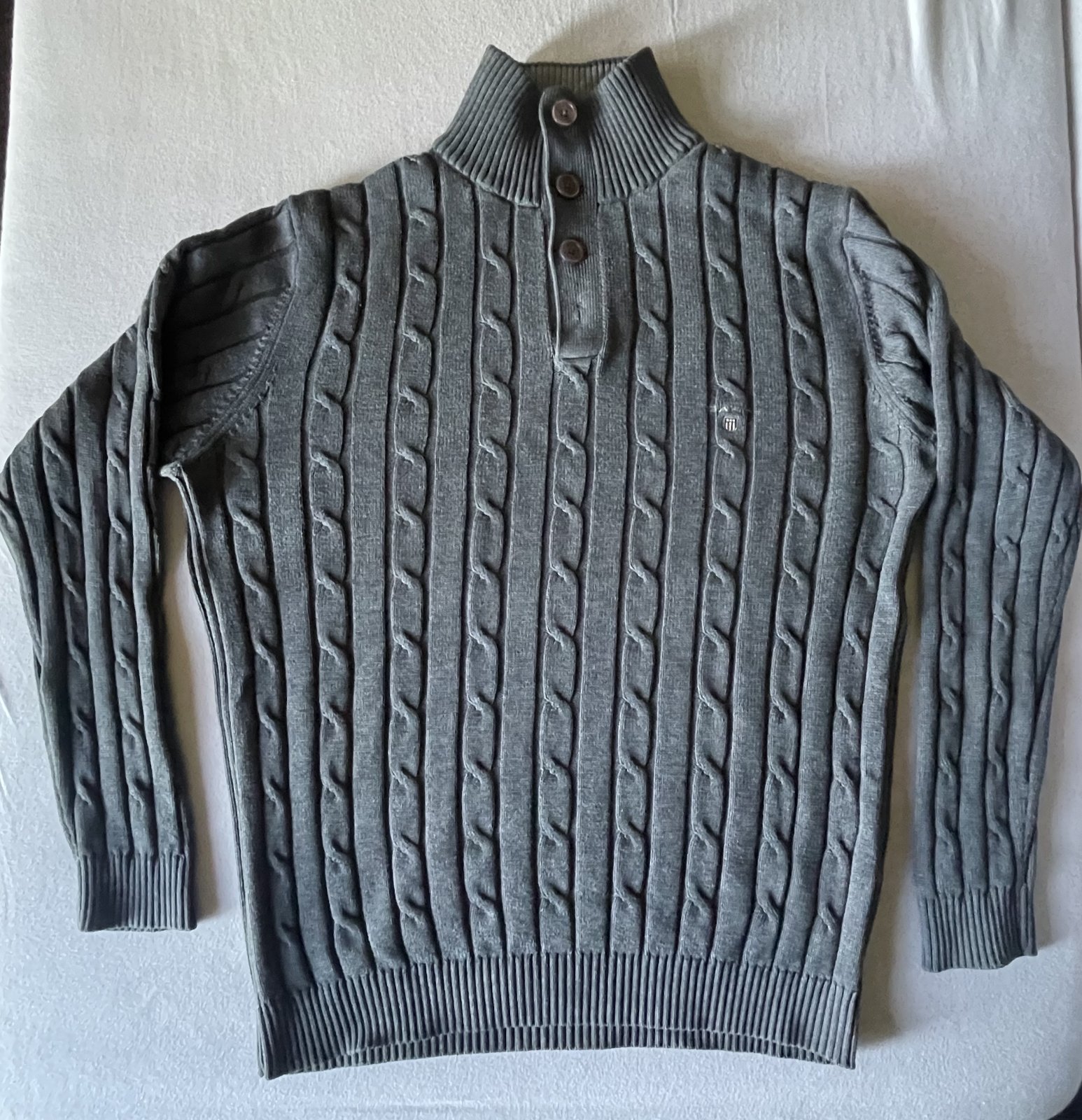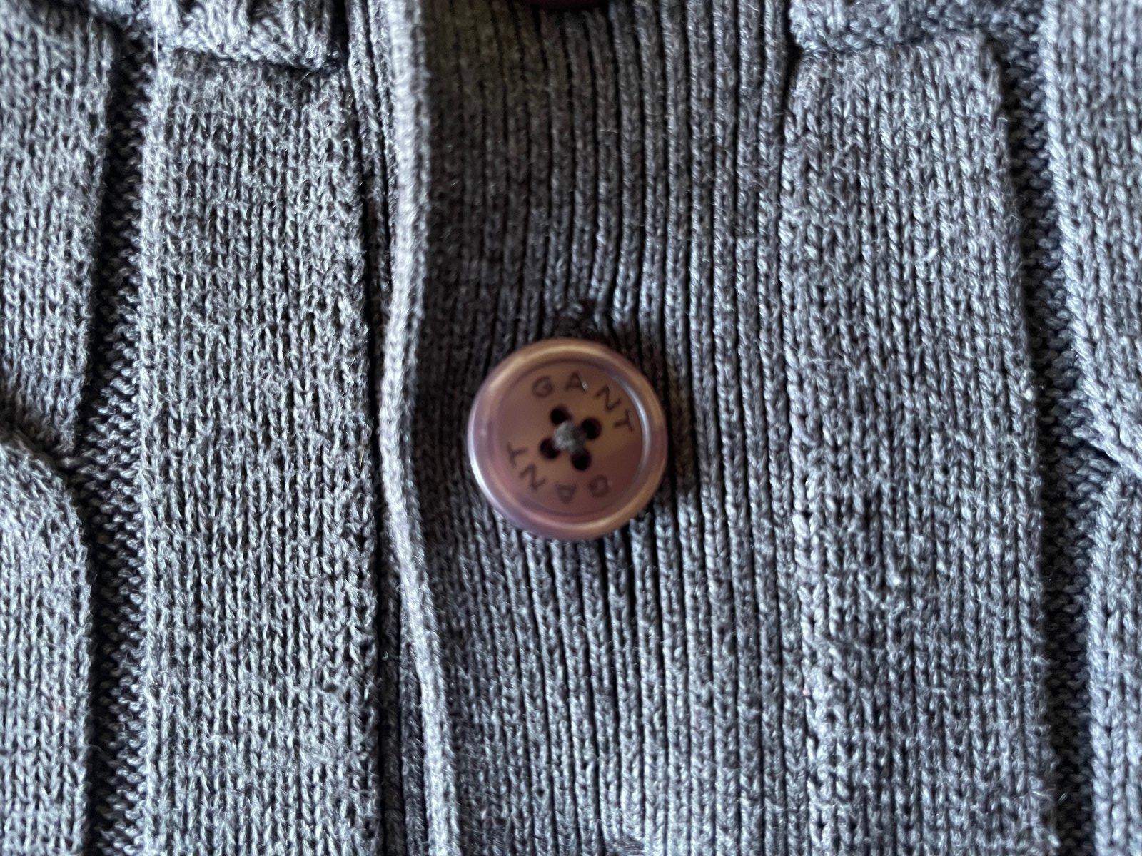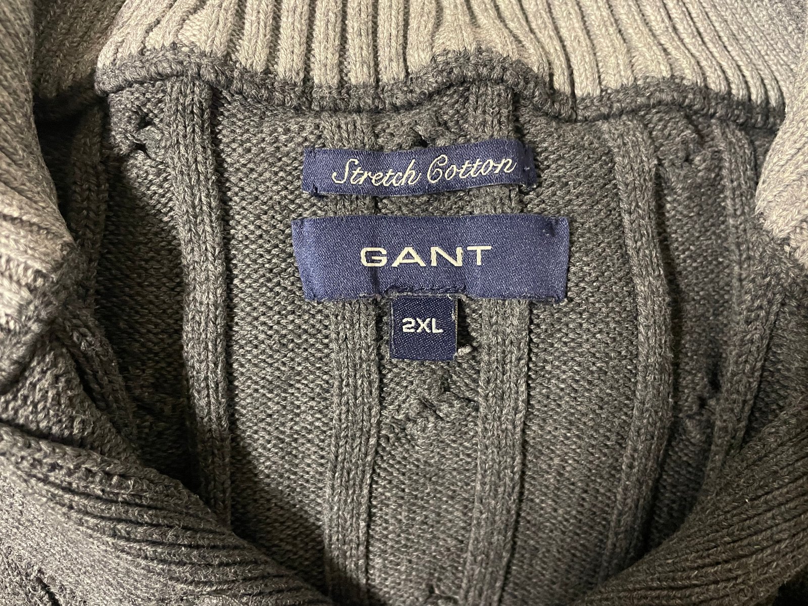 Pánsky tmavošedý sveter značky GANT. Veľkosť XXL. Rozmery: dĺžka 71 cm, šírka v podpazuší 2x61 cm, dĺžka rukáva od podpazušia 51 cm a od ramena 64 cm.