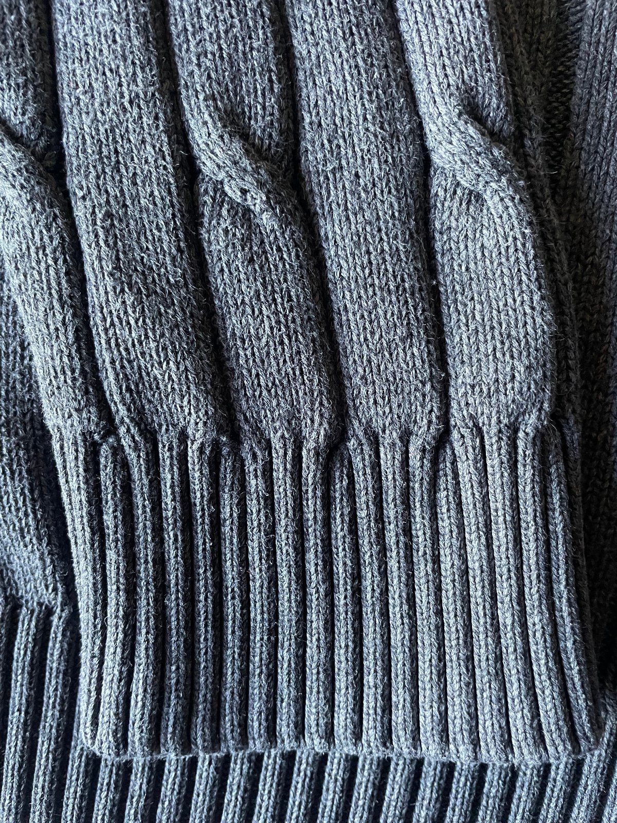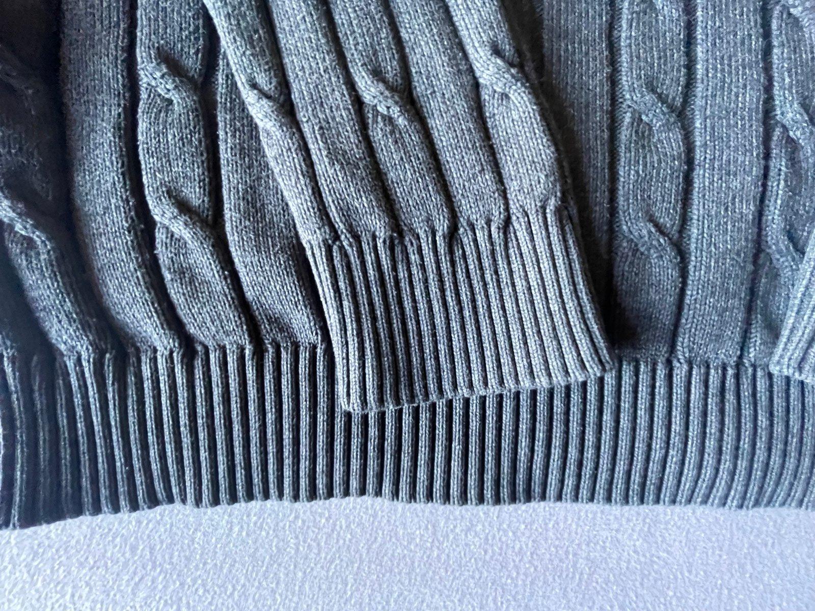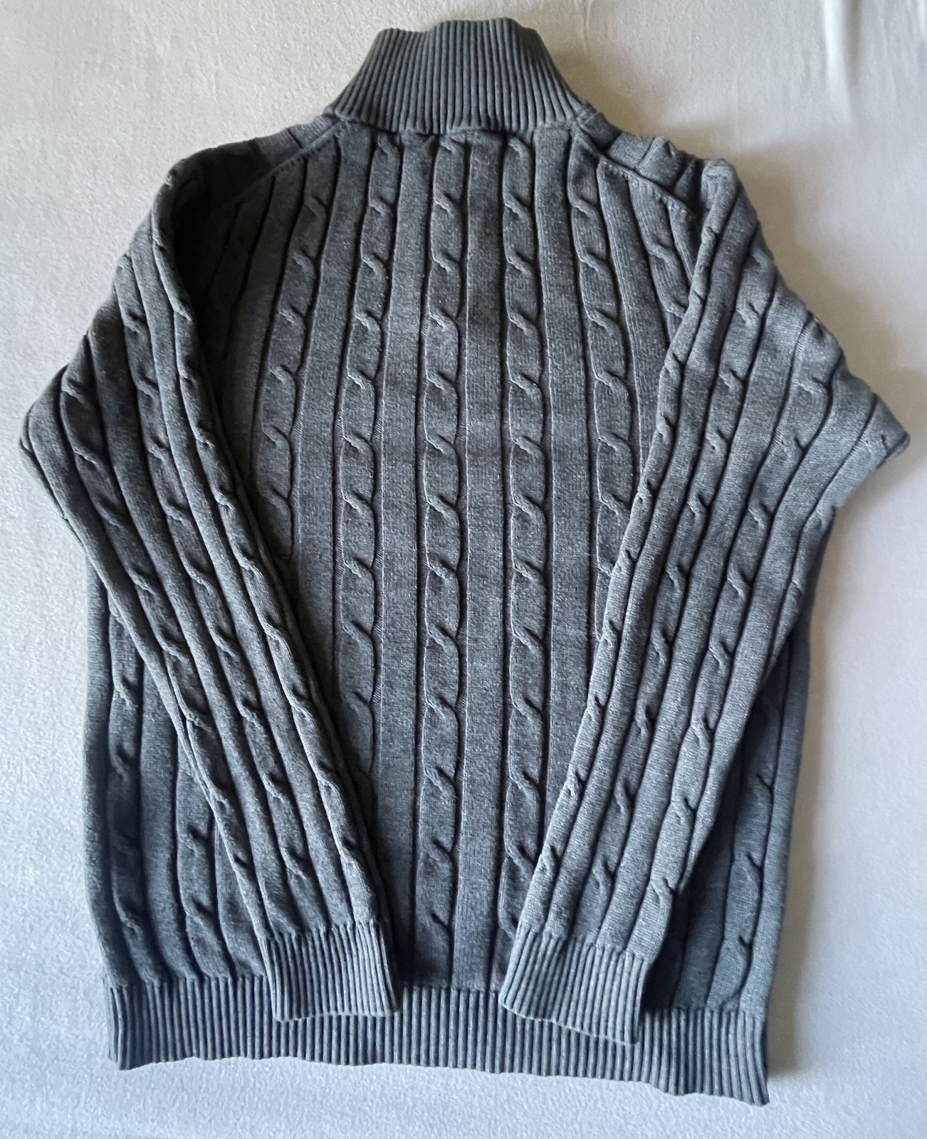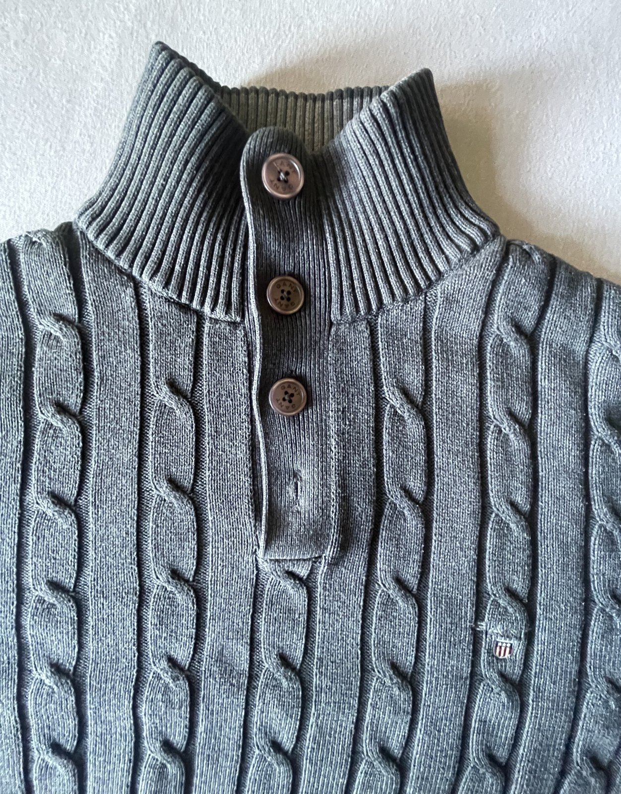 Pánsky tmavošedý sveter značky GANT. Veľkosť XXL. Rozmery: dĺžka 71 cm, šírka v podpazuší 2x61 cm, dĺžka rukáva od podpazušia 51 cm a od ramena 64 cm.