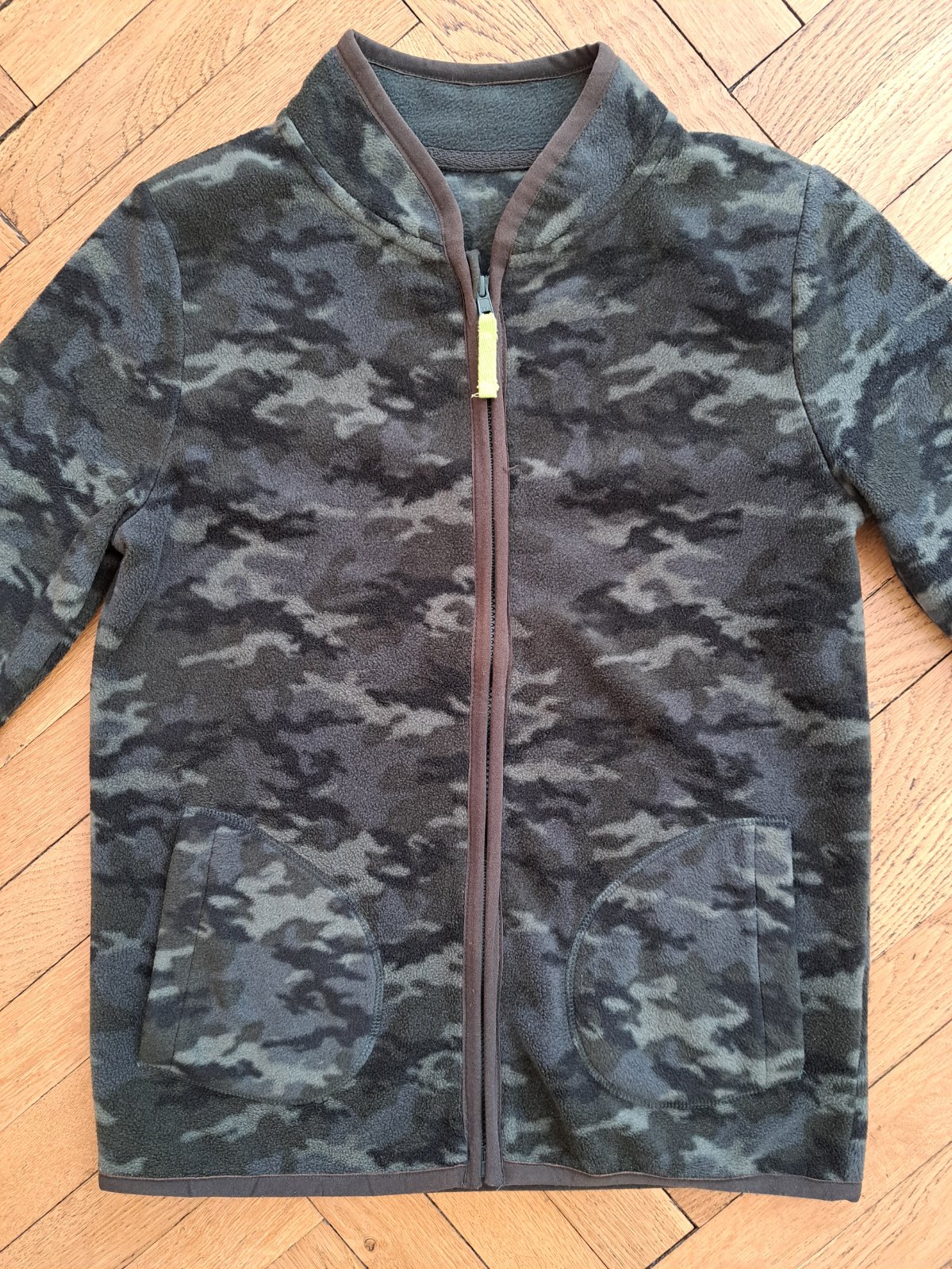 Flísová mikina pre chlapcov č. 146/152 vo výbornom stave. Maskáčový vzor. V realite krajsia tmavozelená farba.