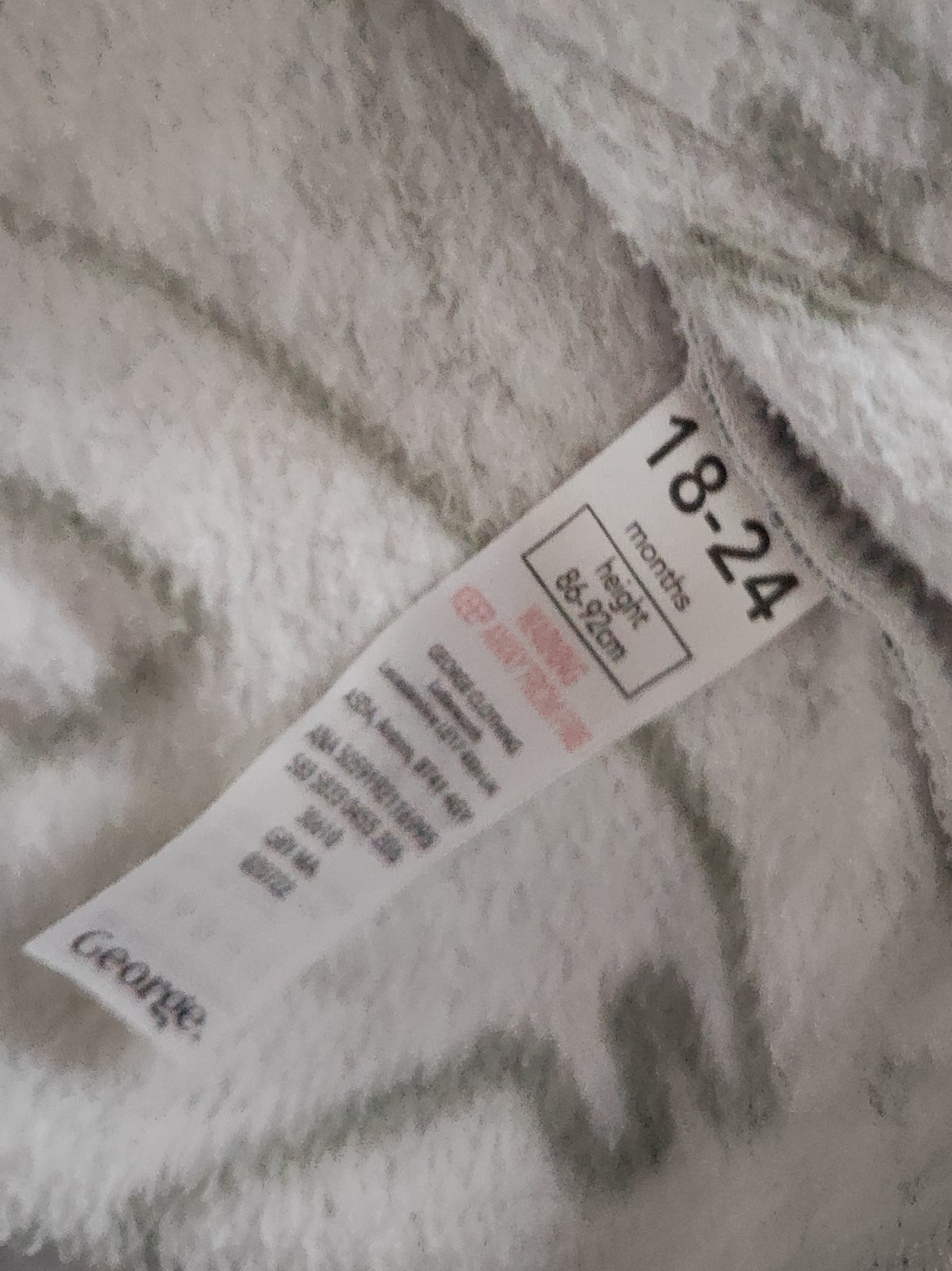 Pohodlna mikina, velkost pisana 2-3, ale myslim ze je mensia, tak od 1,5r. Z vnutornej strany jemny chlpok. Bez poskodeni, dlho ju syn nevynosil, rychlo z nej vyrastol