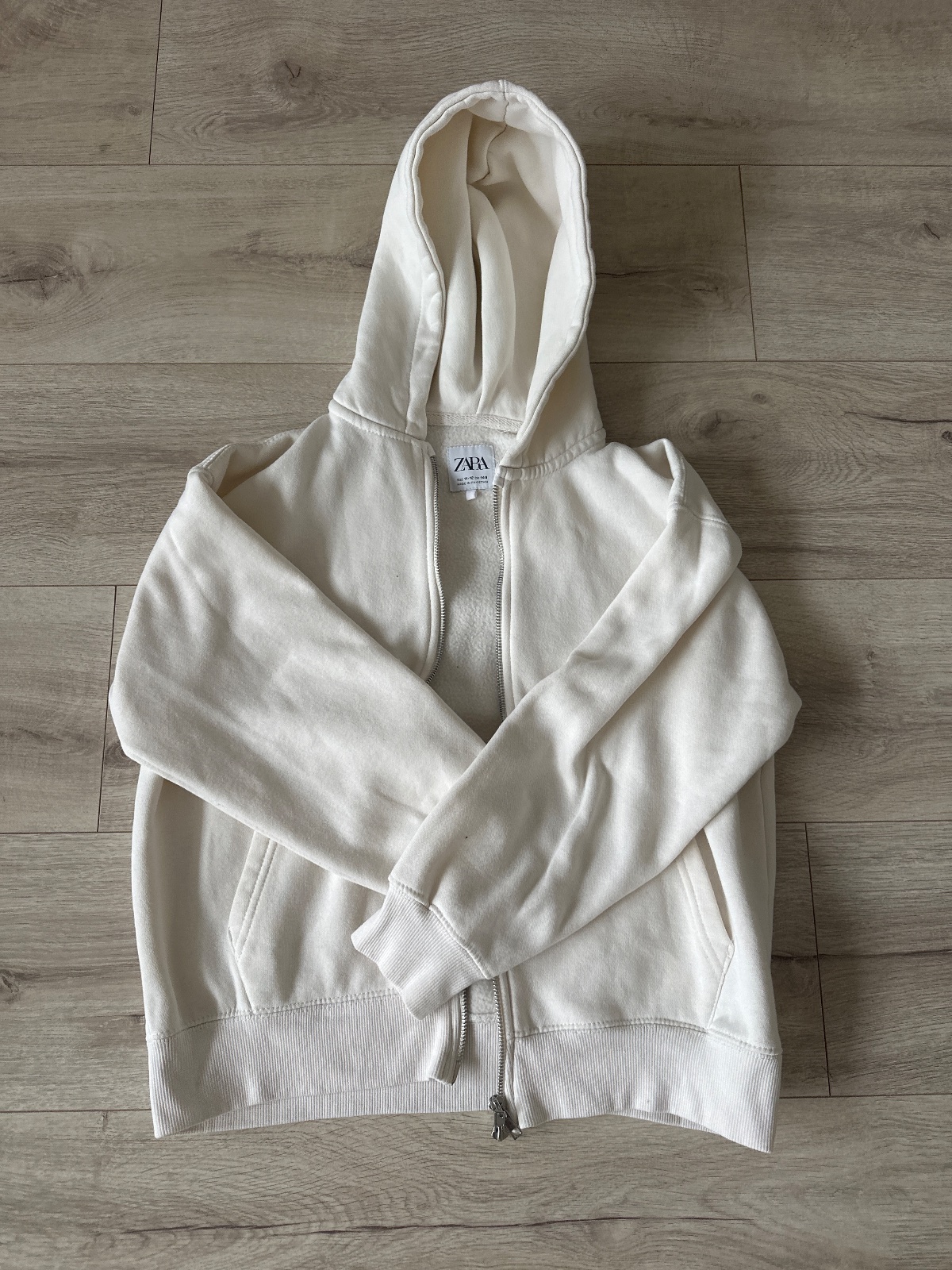 Bezova mikina. Nosena minimalne. Bez akychkovek flakov. Zips funkcny
