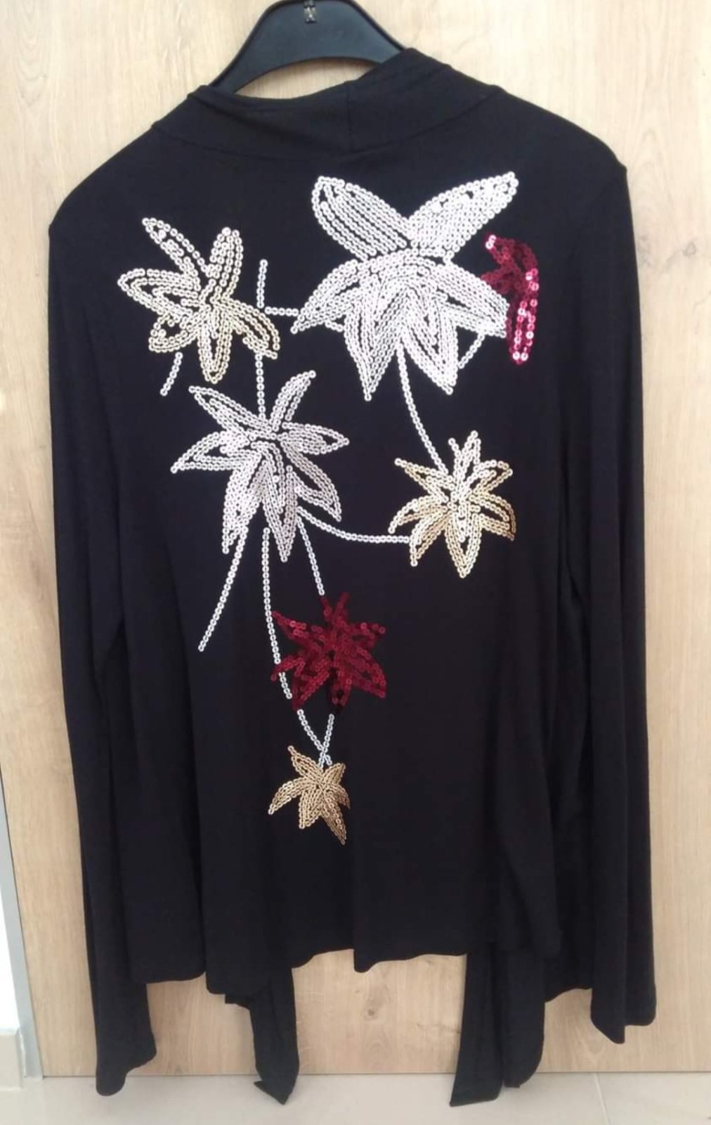 Čierny kardigan s flitrami, veľkosť UK 12, ale sedí na 38