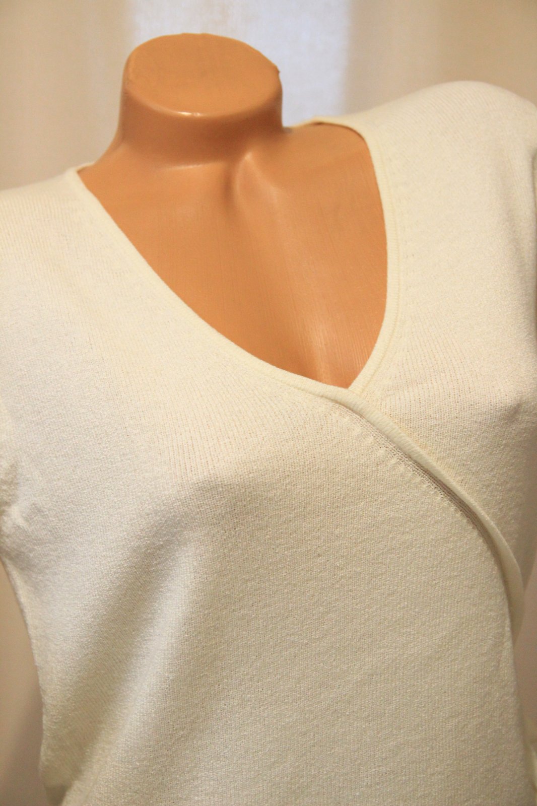 Krémový pletený top s mašličkou na boku, veľkosť L, elastický materiál.
