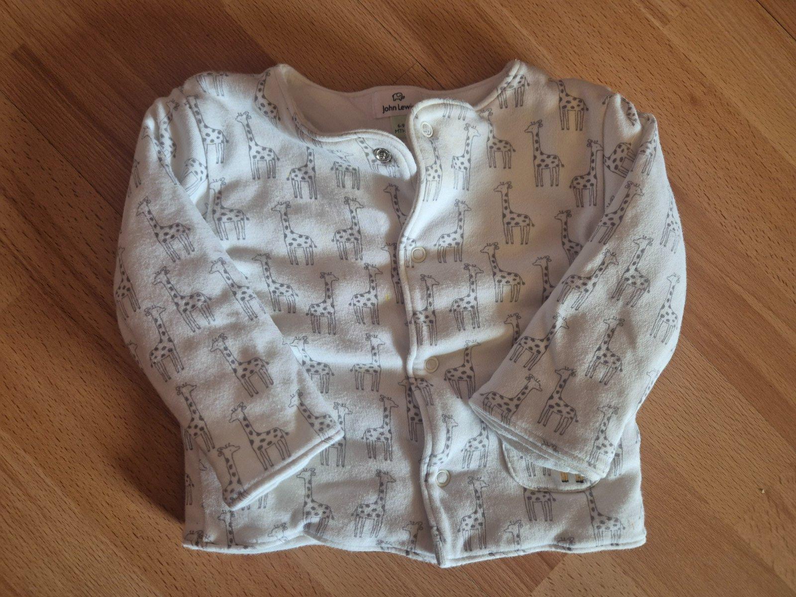 Predám biely svetrik so žirafami na patenty,vel.74,krásny stav, znacka Joh Lewis,cena 2,50€