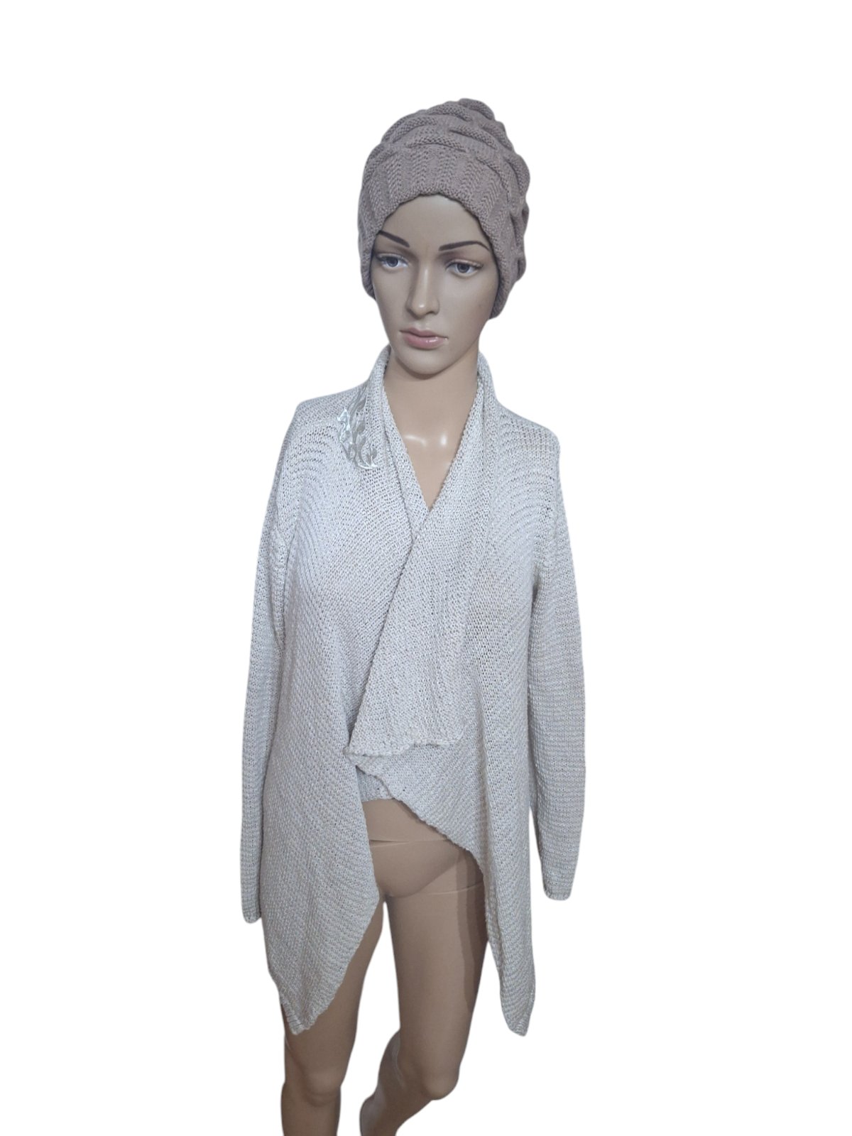 Dámsky značkový svetrík bez gombíkov. Dĺžka je 70cm,obvod hrudníka je 106cm a obvod pása je 102cm. Dĺžka rukáva je od krku 70cm. kód 525