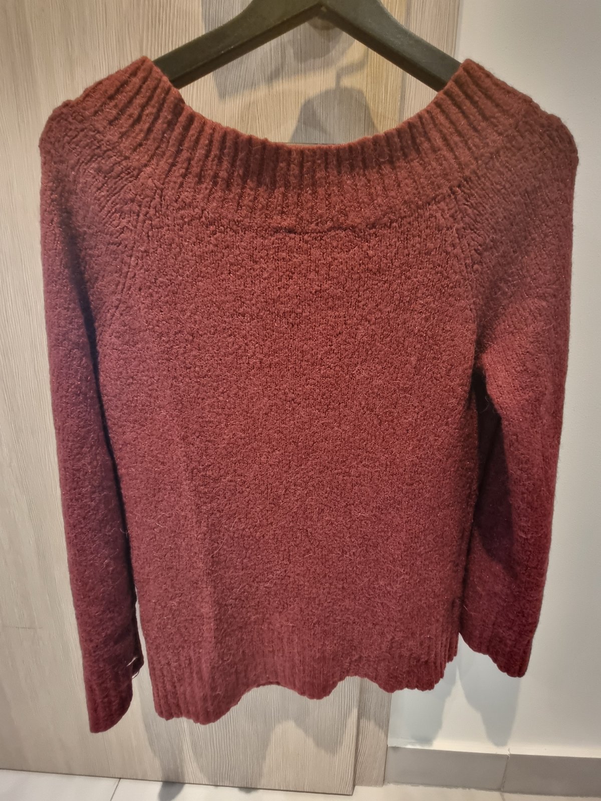 Bordový sveter s trblietavými nitkami Camaieu sediaci na veľkosť M/L.