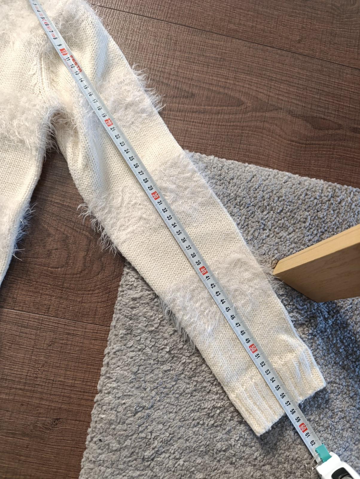 zachovalý, teplý, kde tu žmolky, ale dajú sa určite odžmolkovať kožušina v rukávoch nie je - viď foto velkosť 146/152 šírka 2x43 cm rukáv od krku 69 cm celková dĺžka 57 cm