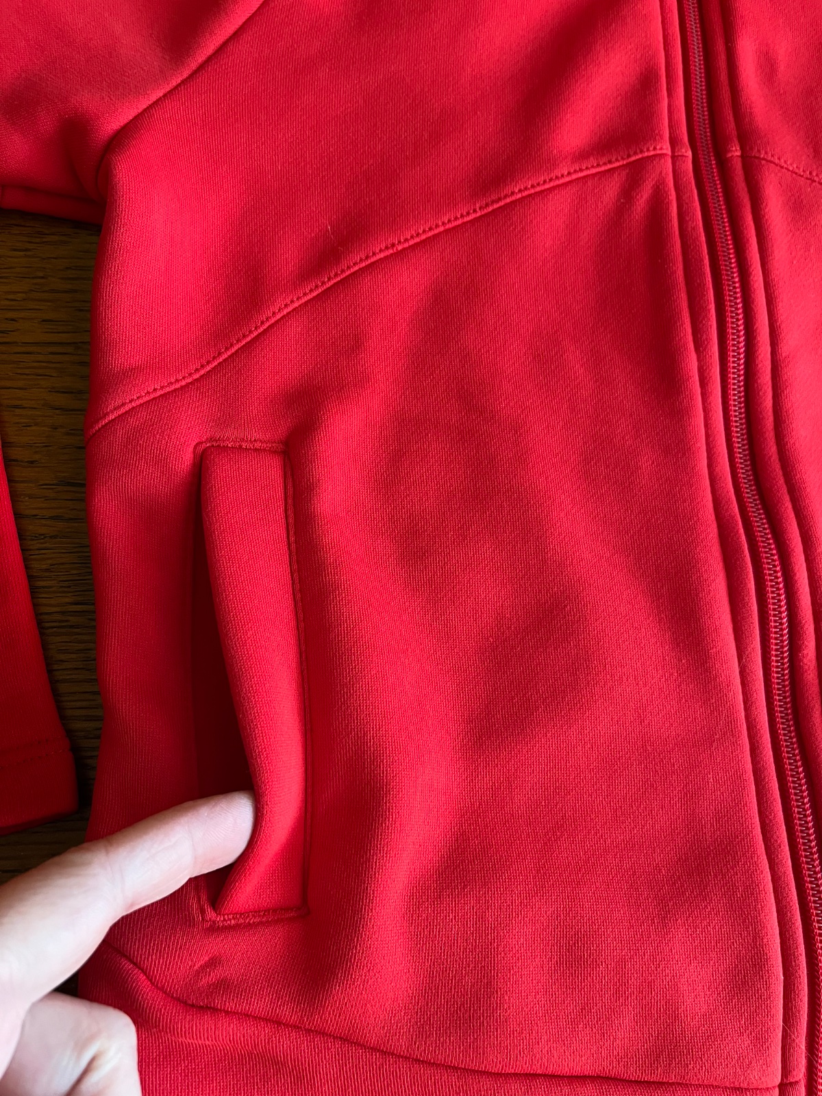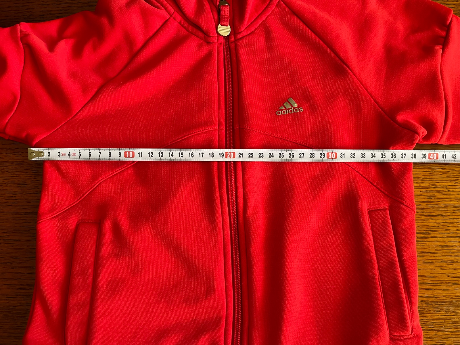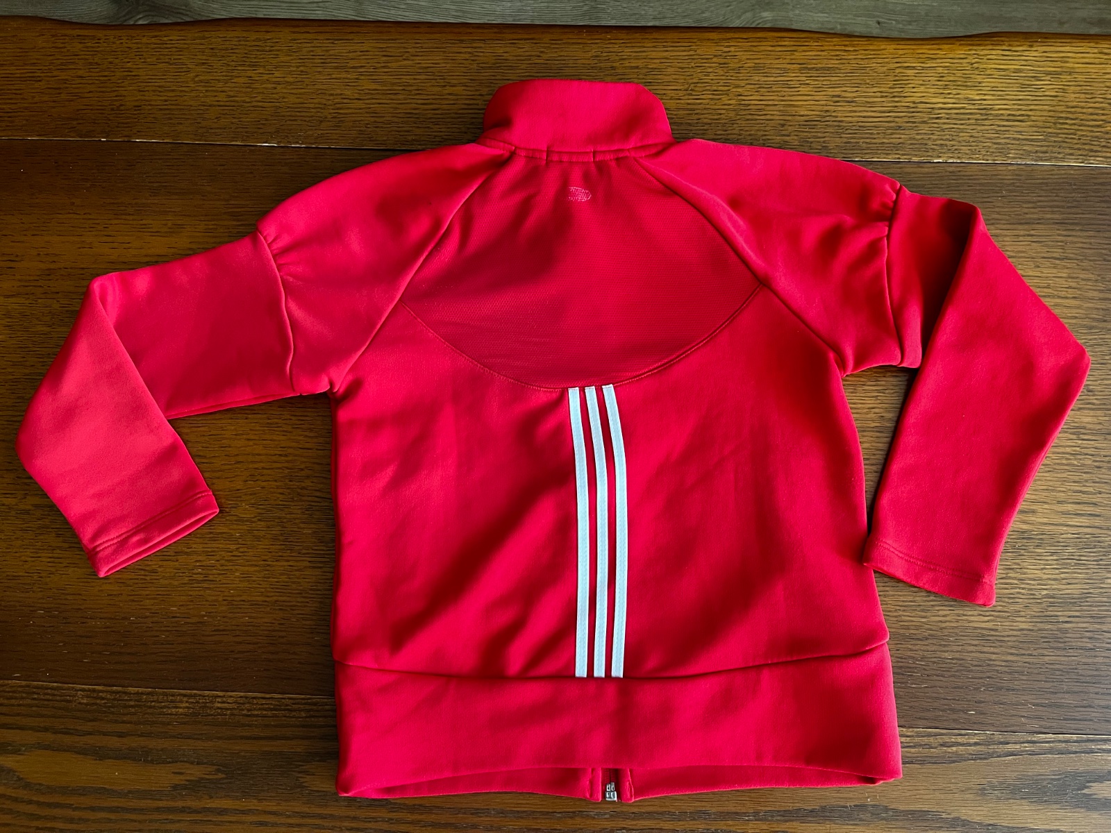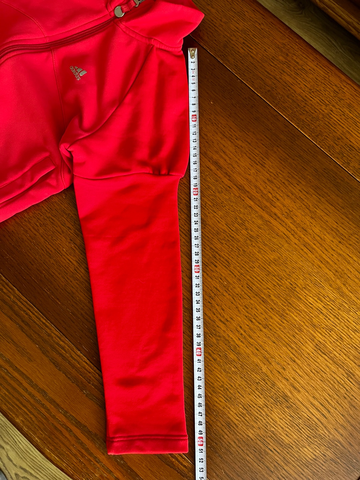 Zaujímavý strih rukávov, na bežci zipsu znak troch pásikov Adidas, po bokoch vrecká.