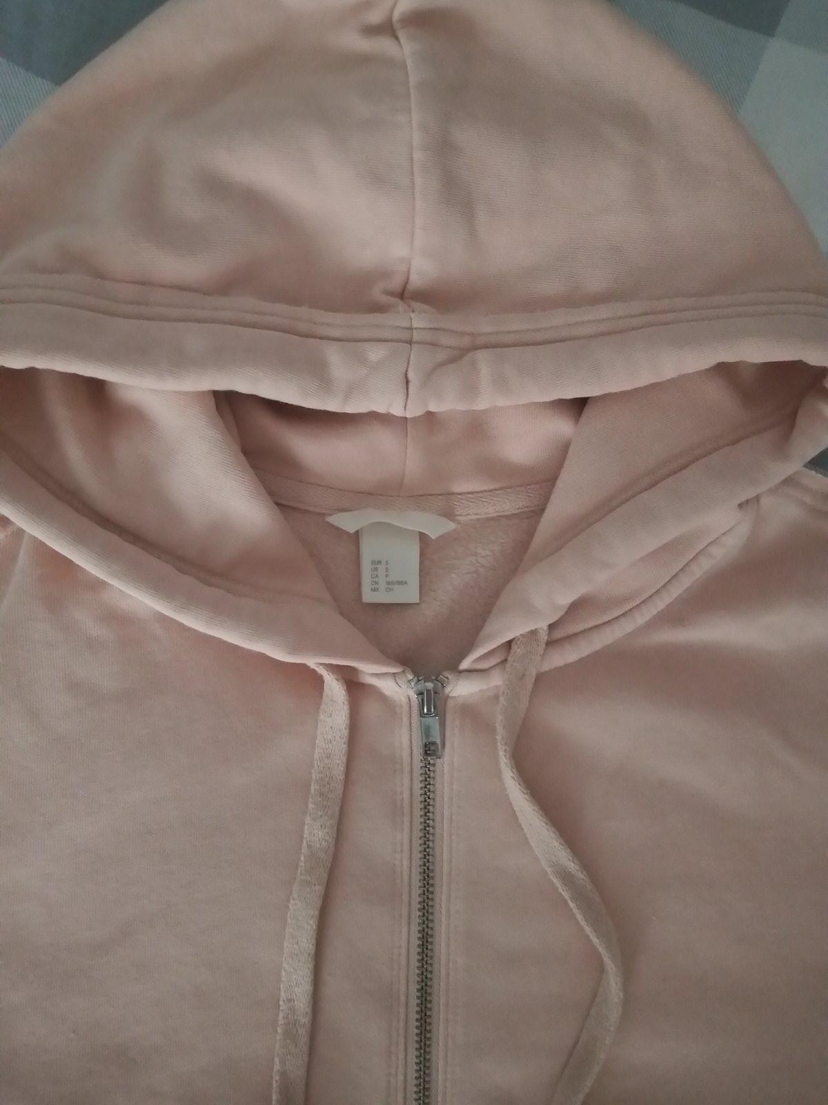 Pohodlná mikina pudrovo ružovej farby, z príjemného teplákového materiálu, s rozparkami po bokoch, minimálne nosená, výborný stav bez poškodení. D 62, Š 52, rukáv od ramena 62