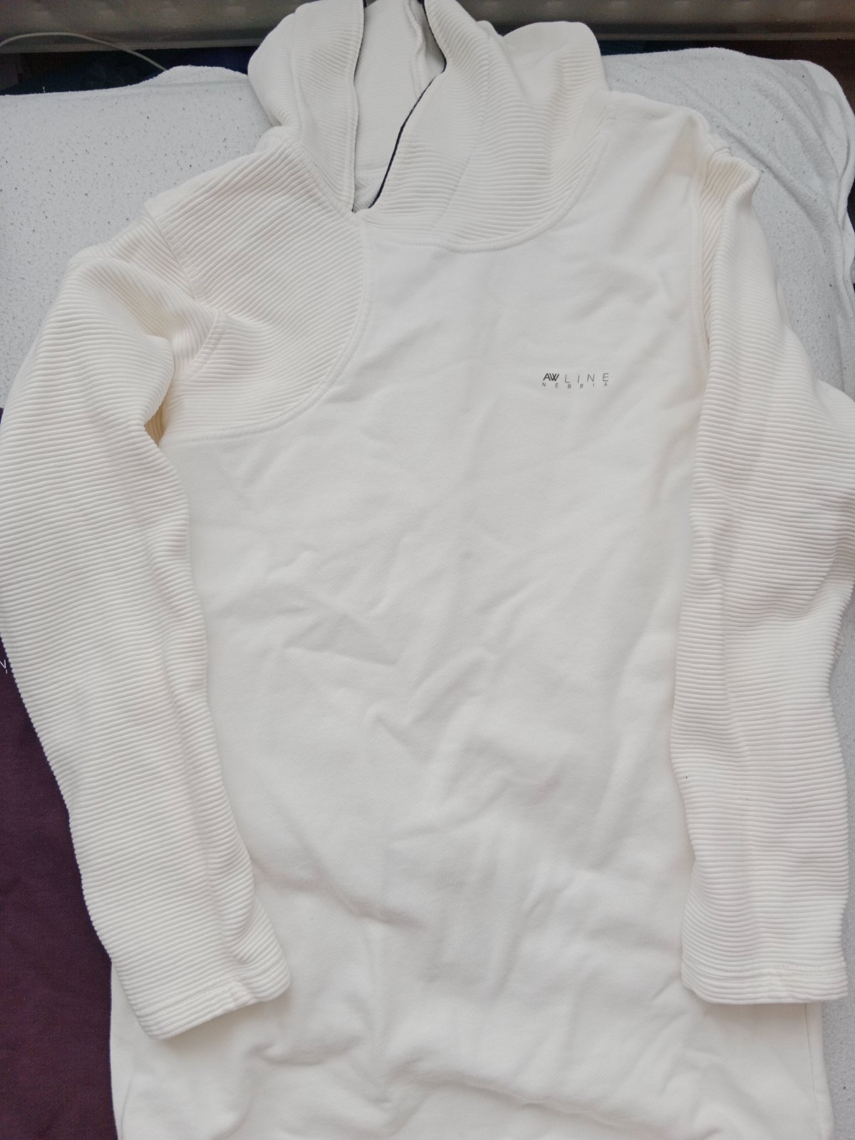 Krásna mikina, v 100% stave. Len opraná, nenosená. Super športovo-elegantný štýl. Vrchný biely materiál je hladký, akoby jemne lesklý - veeeľmi zaujímavý. Veľ. L