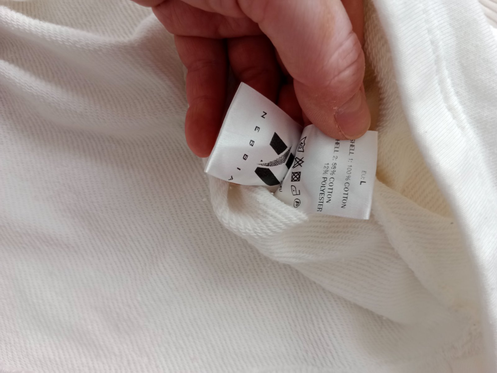Je mierne zazltnuta na golieri, ale kto vie ako správne používať bieliace prostriedky, tak sa toho zbaví. Ináč je v poriadku, len mužovi je väčšia, lebo je to také väčšie Lko, tak ju nechce nosiť.