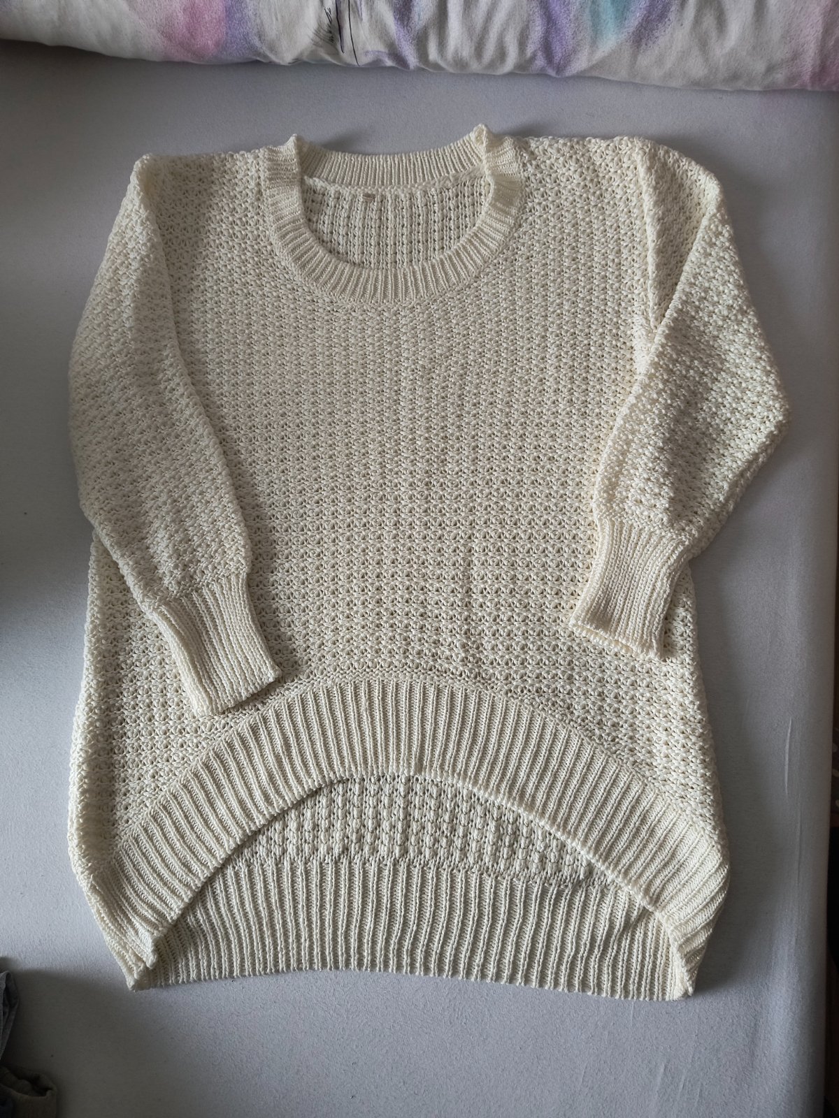Krásny predĺžený svetrík, veľkosť odhadom L, možno menšie XL. Ja už do neho nevojdem. 😕 Cena 6 + pošta.