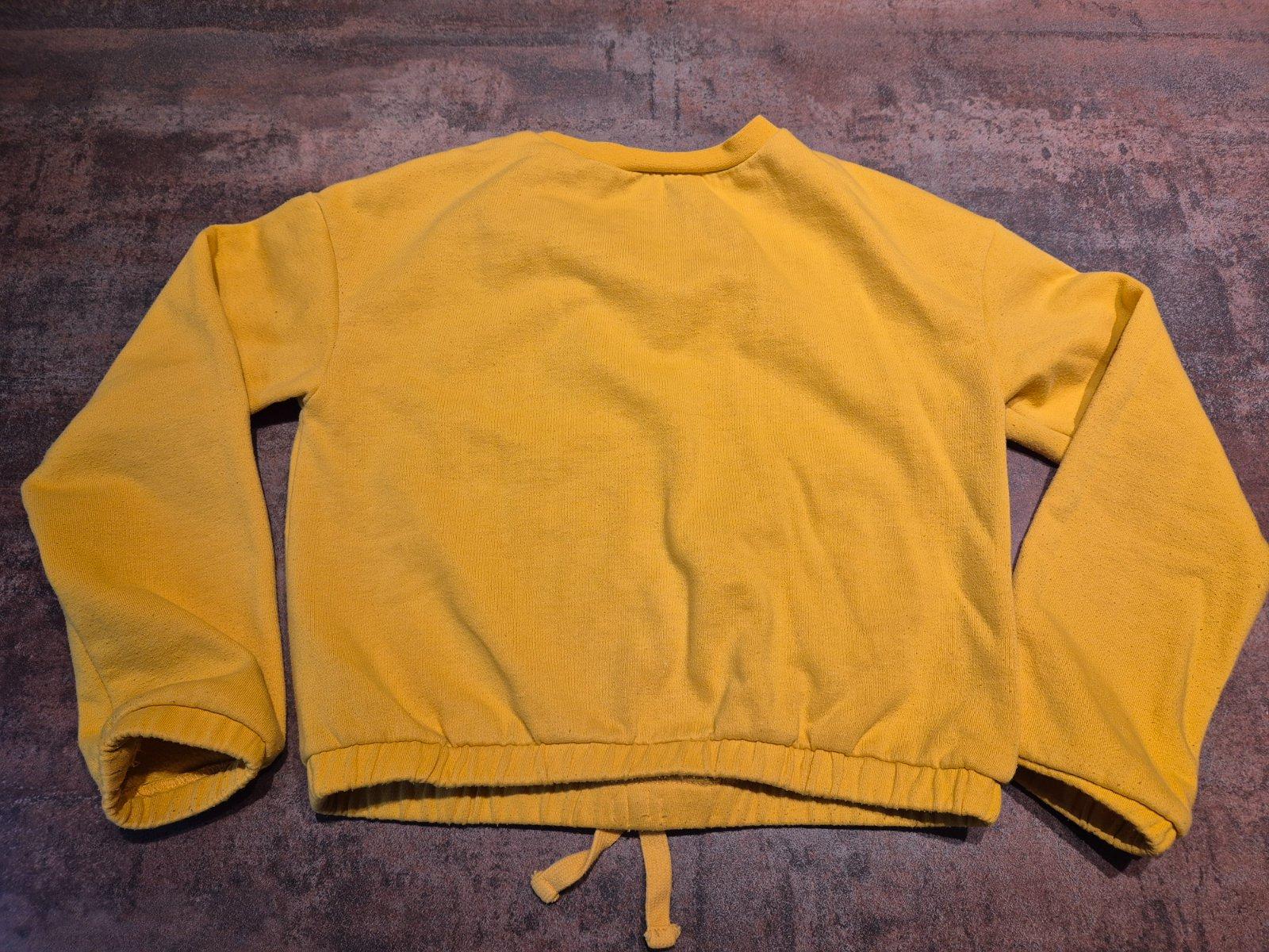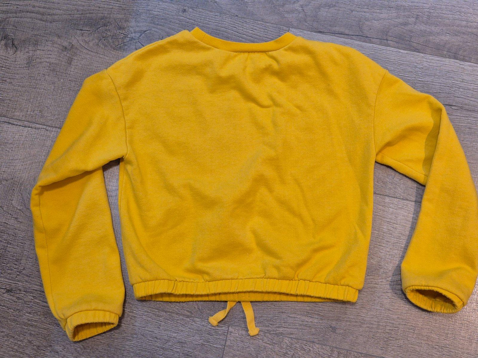 Malo nosena mikina do pasa s gumickami na rukavoch a v pase . Farba tepla syta zlta. Velkost L (14) , cca pre vysku 146 - 152 cm. Celkova dlzka 44 cm. Dlzka rukava od zasevu na ramene 44 cm. Top stav!