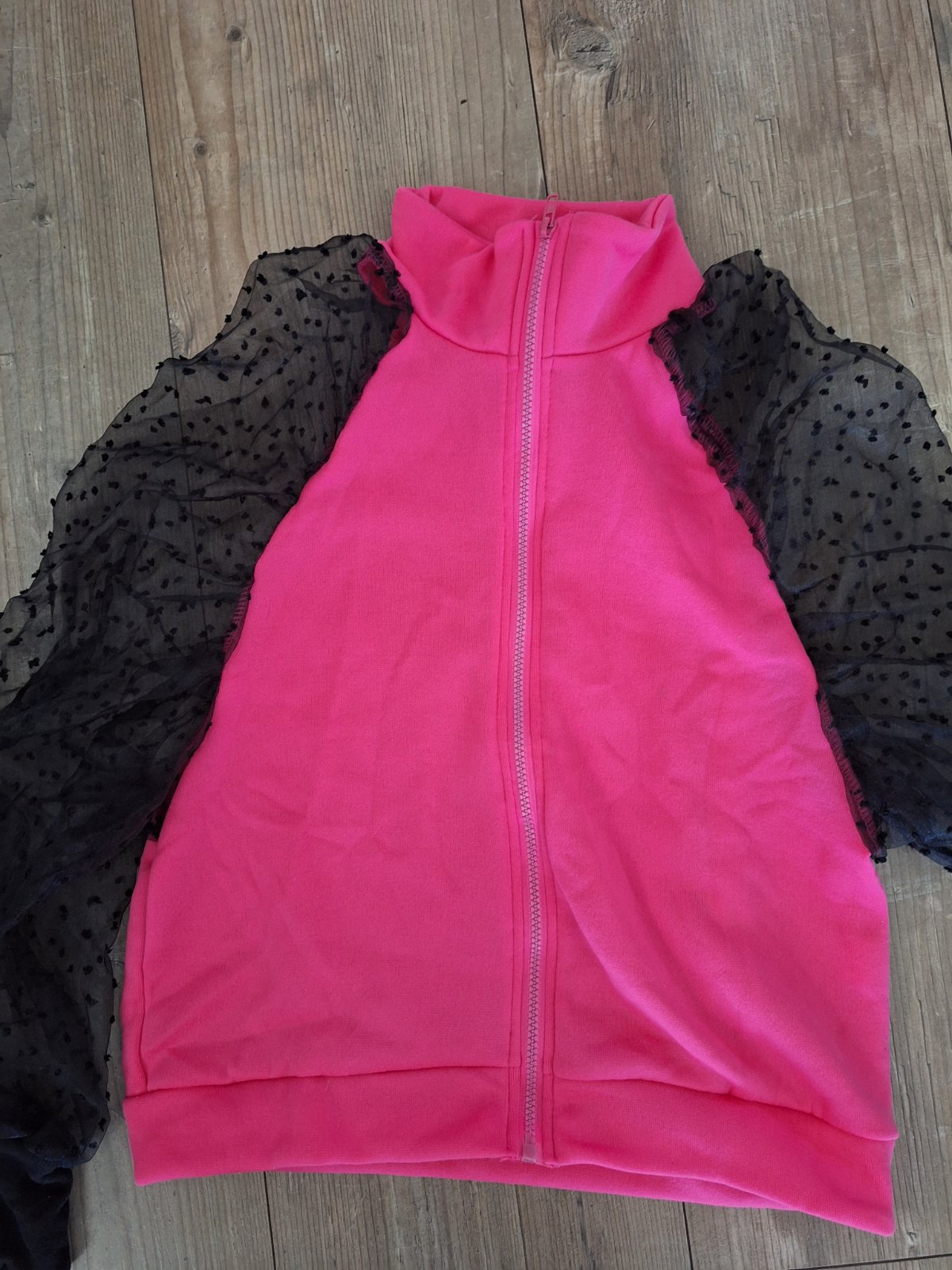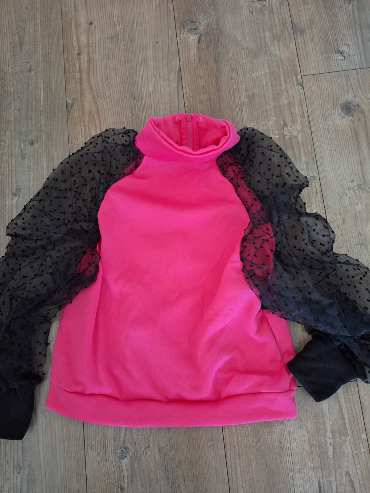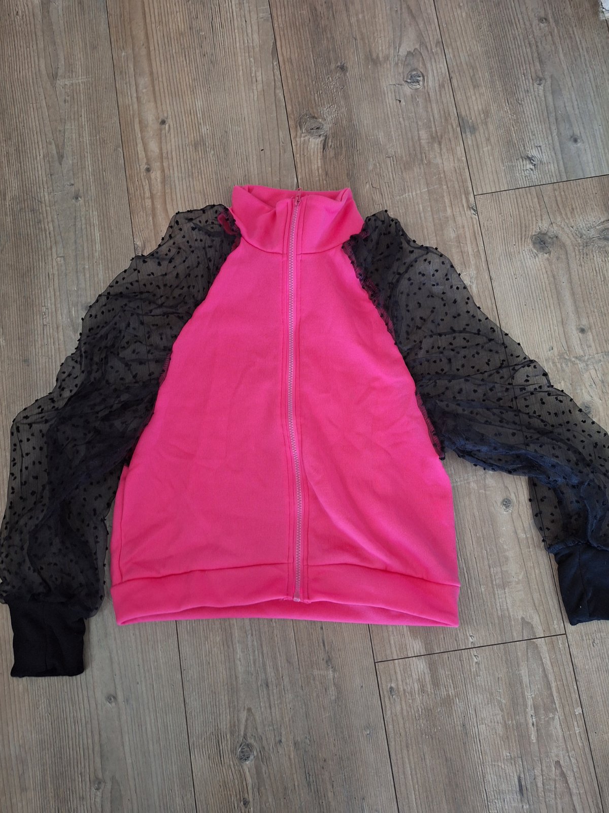 kraaaaasna zaujimava a dokonala mikina s velkymi nariasenymi priehladnymi rukavmi. material 65% polyester a 35% bavlna . velkost , M
