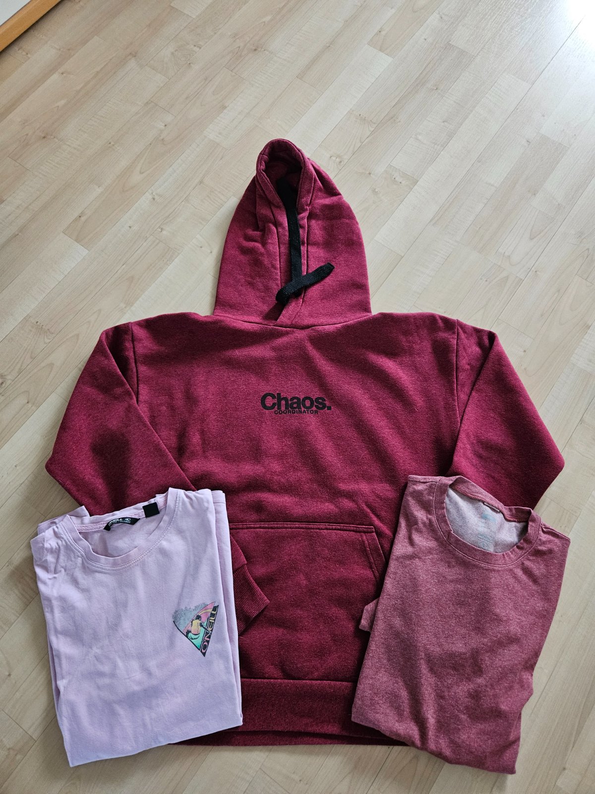 Mikina House, v super stave, merajte, klasicky strih, k tomu triko O'neil, trochu vidno pranie, poslúži pod mikinu, a druhé tričko funkčné z Decathlonu. Nosené spolu v jednom období. cena spolu.