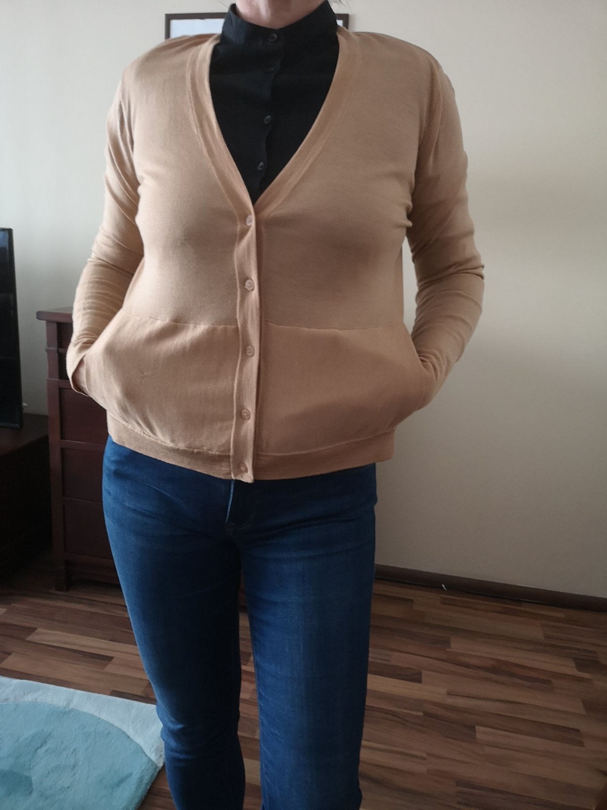 Predám tento jemný svetrík s vreckami a zapínaním na gombíky. Veľmi dobrý stav.