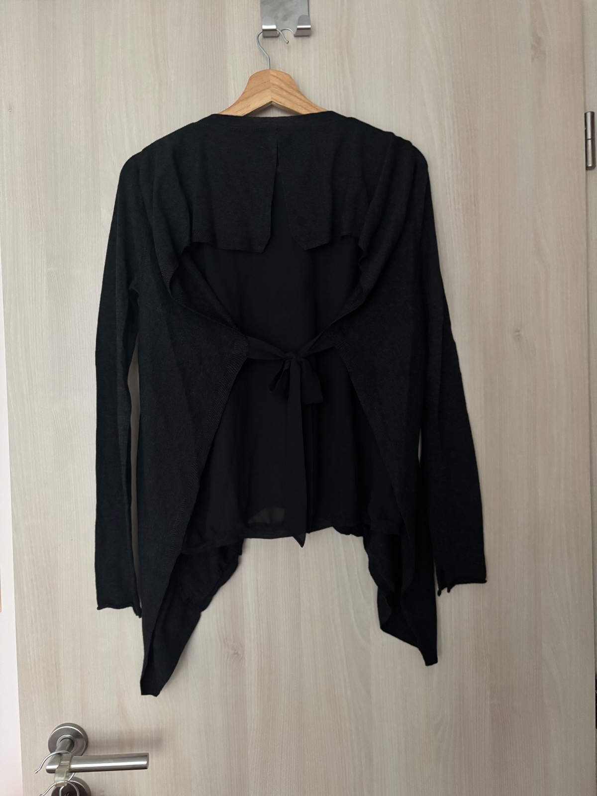 Predám krásny dámsky svetrík s krátkym rukávom,na gombíky,vpredu s čipkou ,vzadu uplet.Velkost S/M.Cena 18€+pošta.