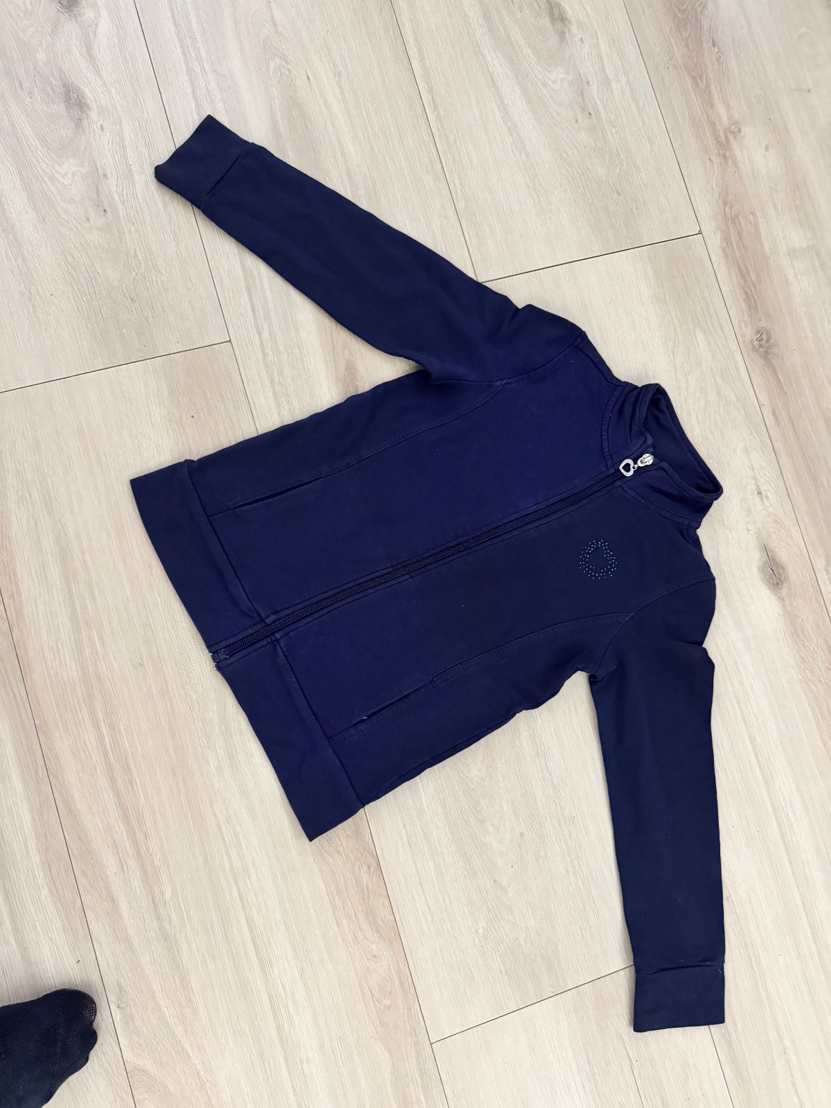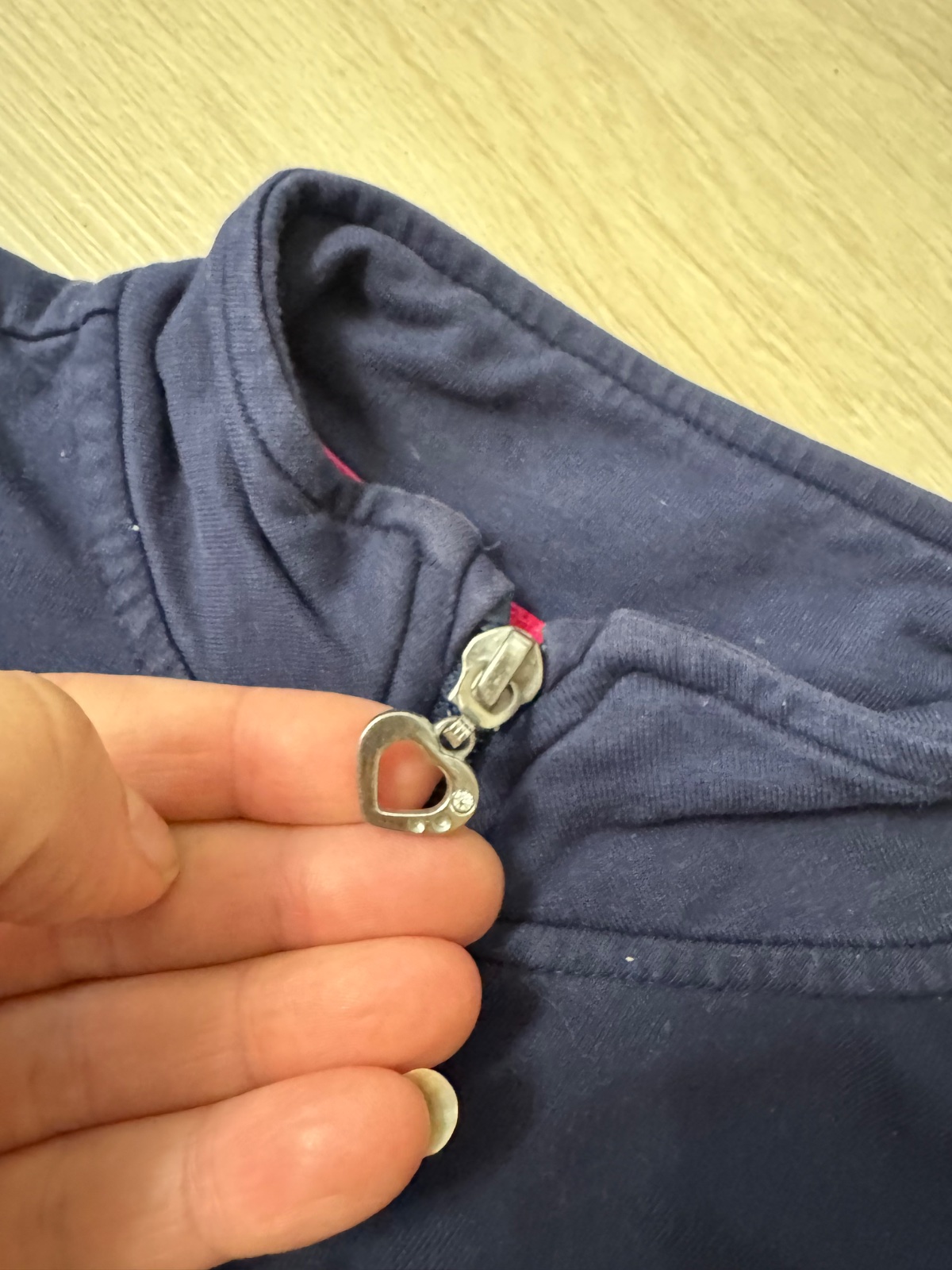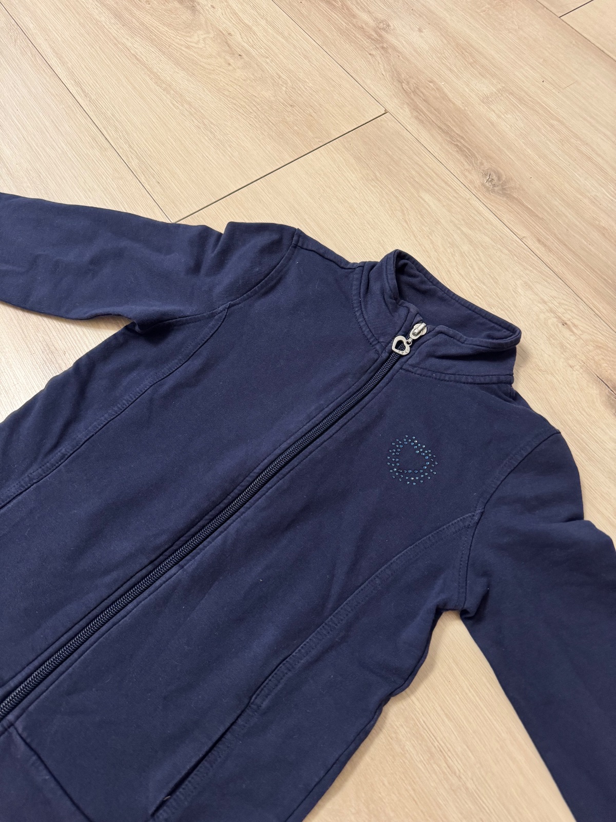 Krasna tmavomodra mikinka, prijemny material, na zapinanie. So srdieckom a srdieckovym zipsom.