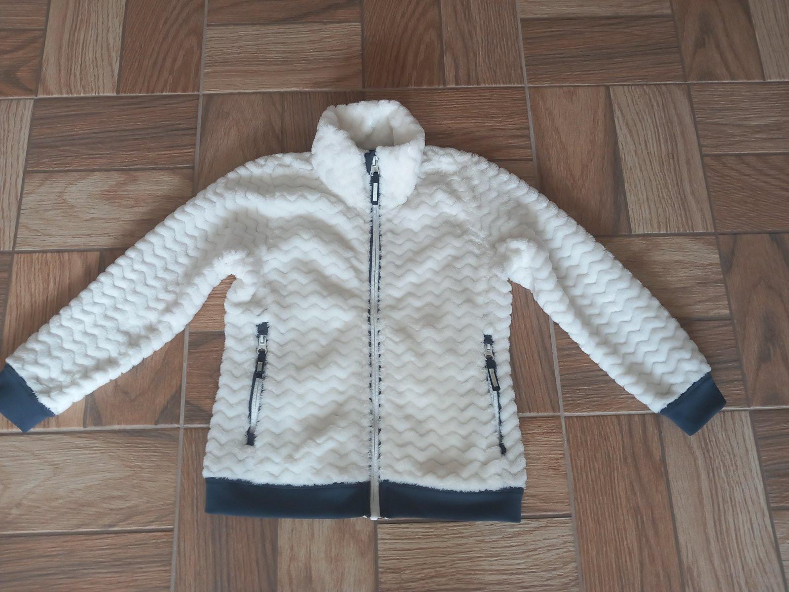 Huňatá hebunká teplučká mikina s neónovými doplnkami, funkčné vrecká, vysoké zapínanie s ochranou brady, super stav. Dĺžka: 47 + 4 cm zadok Prsia: 39x2 cm Rukáv od krku: 49 cm.
