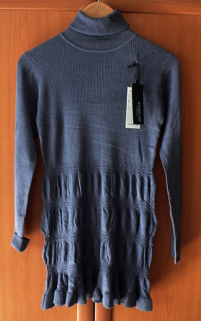Pekné rolákové pletené minišaty, resp. predĺžená tunika tmavšej šedej farby značky N.EVERY DAY fashion.