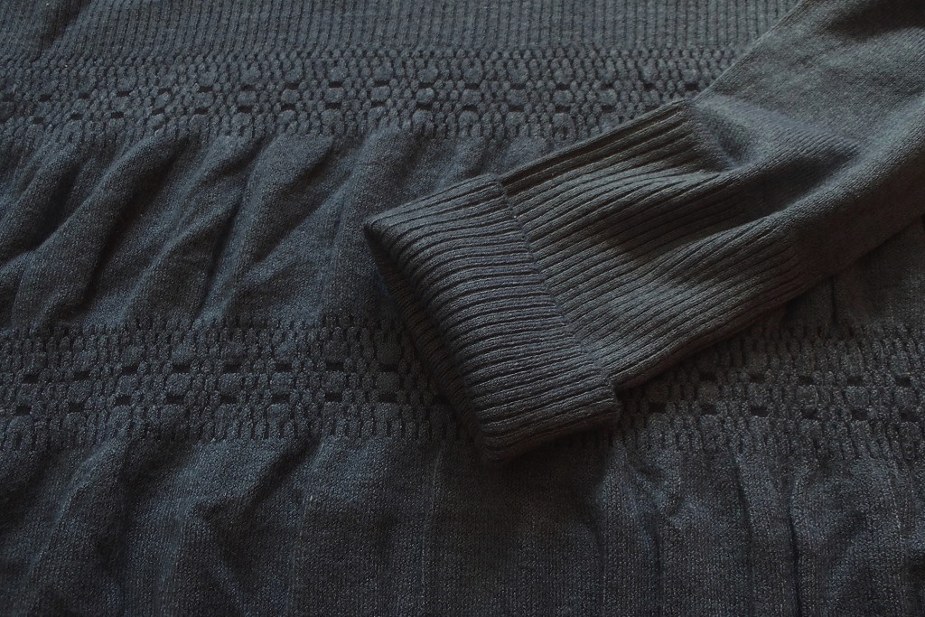 Príjemný materiál, ako všetko pletené oblečenie, je elastický, prispôsobivý, mäkučký.