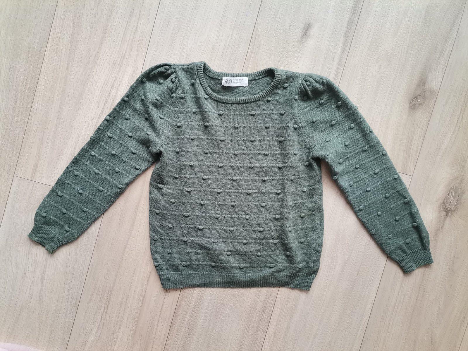 Ponúkam pekný svetrík vojenskej zelenej farby, vpredu s aplikáciou mašličiek. Je značky Terranova Kids girl. Bol menej nosený, no i tak má nejaké známky nosenia ako to pri pleteninách býva, no nič ...