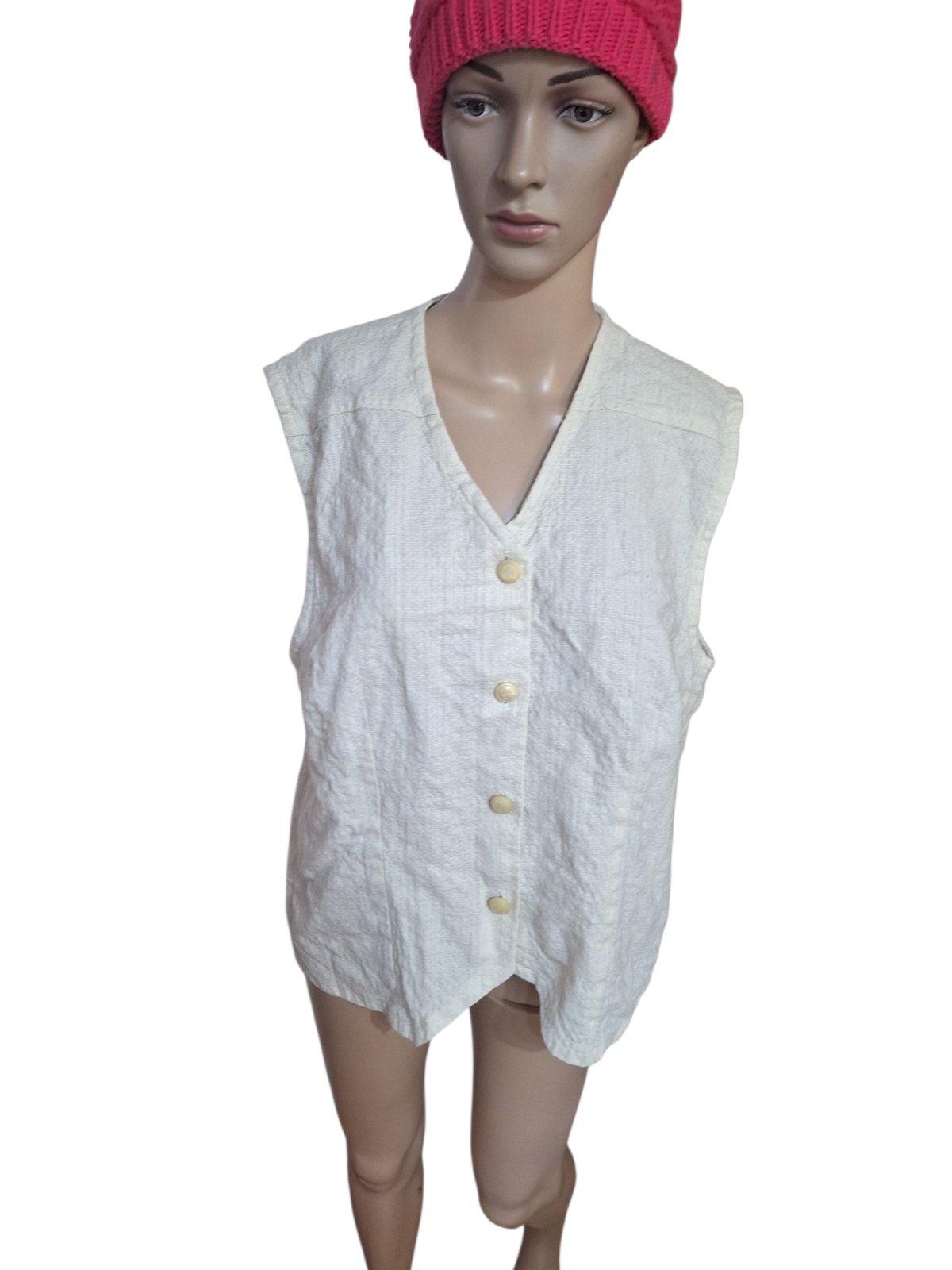 Dámska retro vesta na zapínanie. Dĺžka je 60cm,obvod hrudníka je 102cm a obvod pása je 98cm. kód 192A